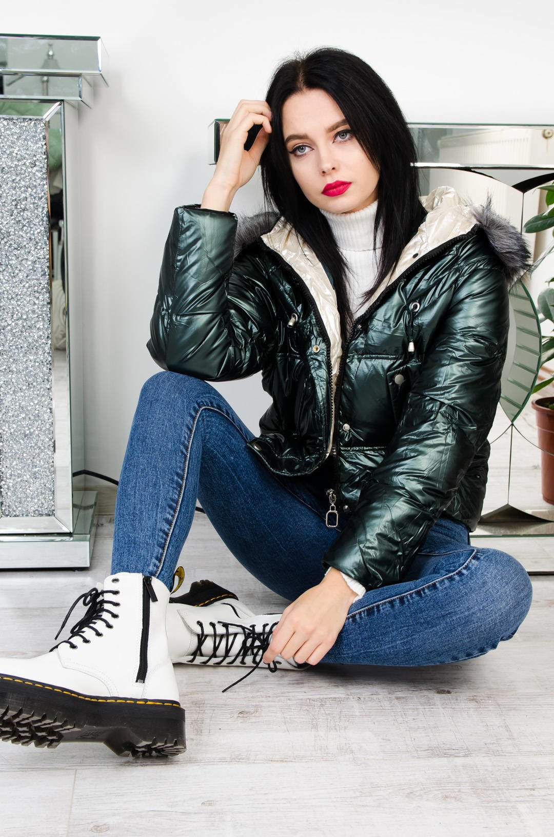 KRÓTKA ZIELONA METALICZNA KURTKA Z FUTERKIEM