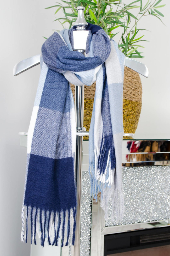 GRANATOWO-NIEBIESKO-SZARY SZAL W KRATĘ