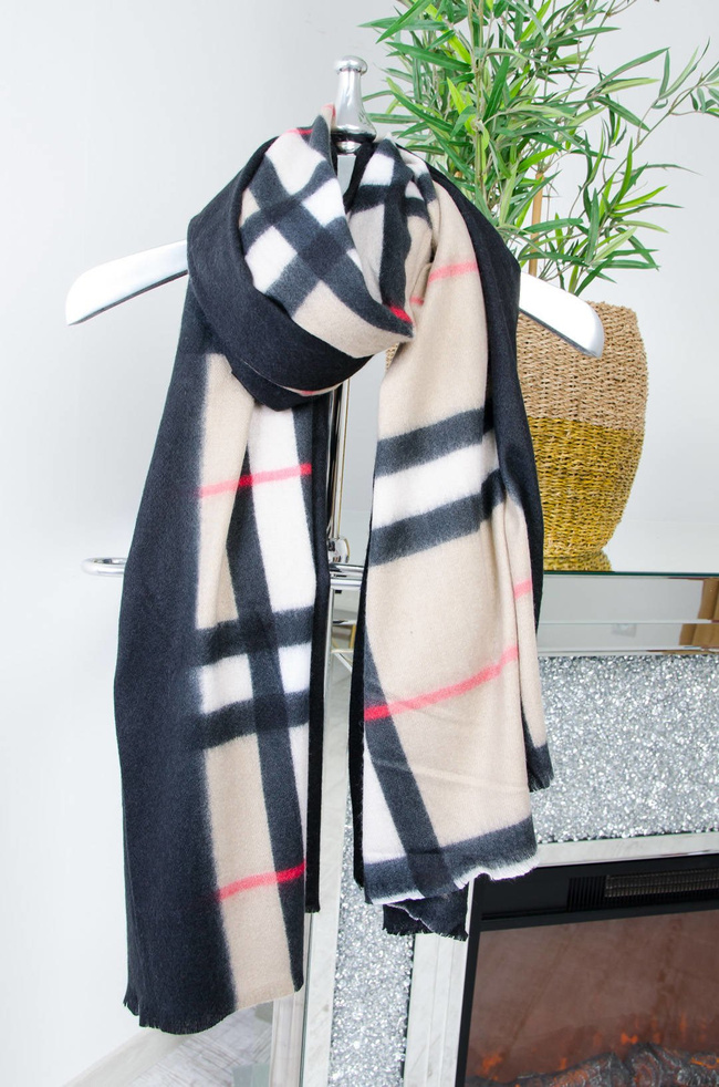 CZARNO-BEŻOWY SZAL W KRATĘ