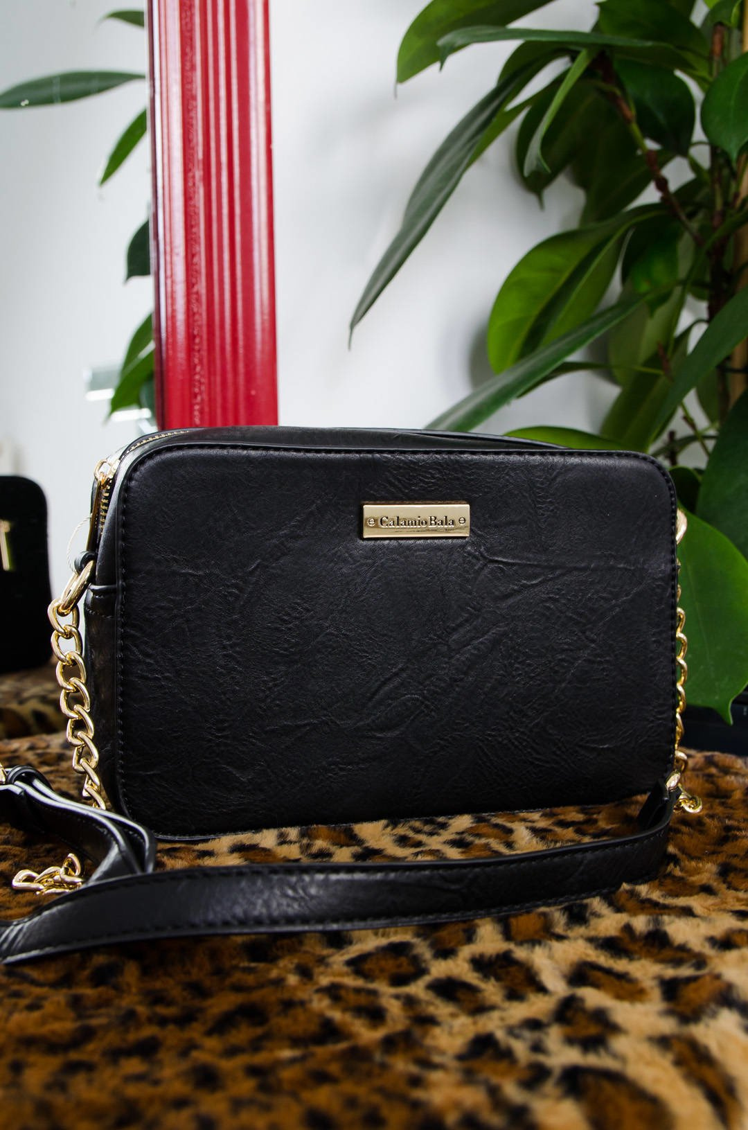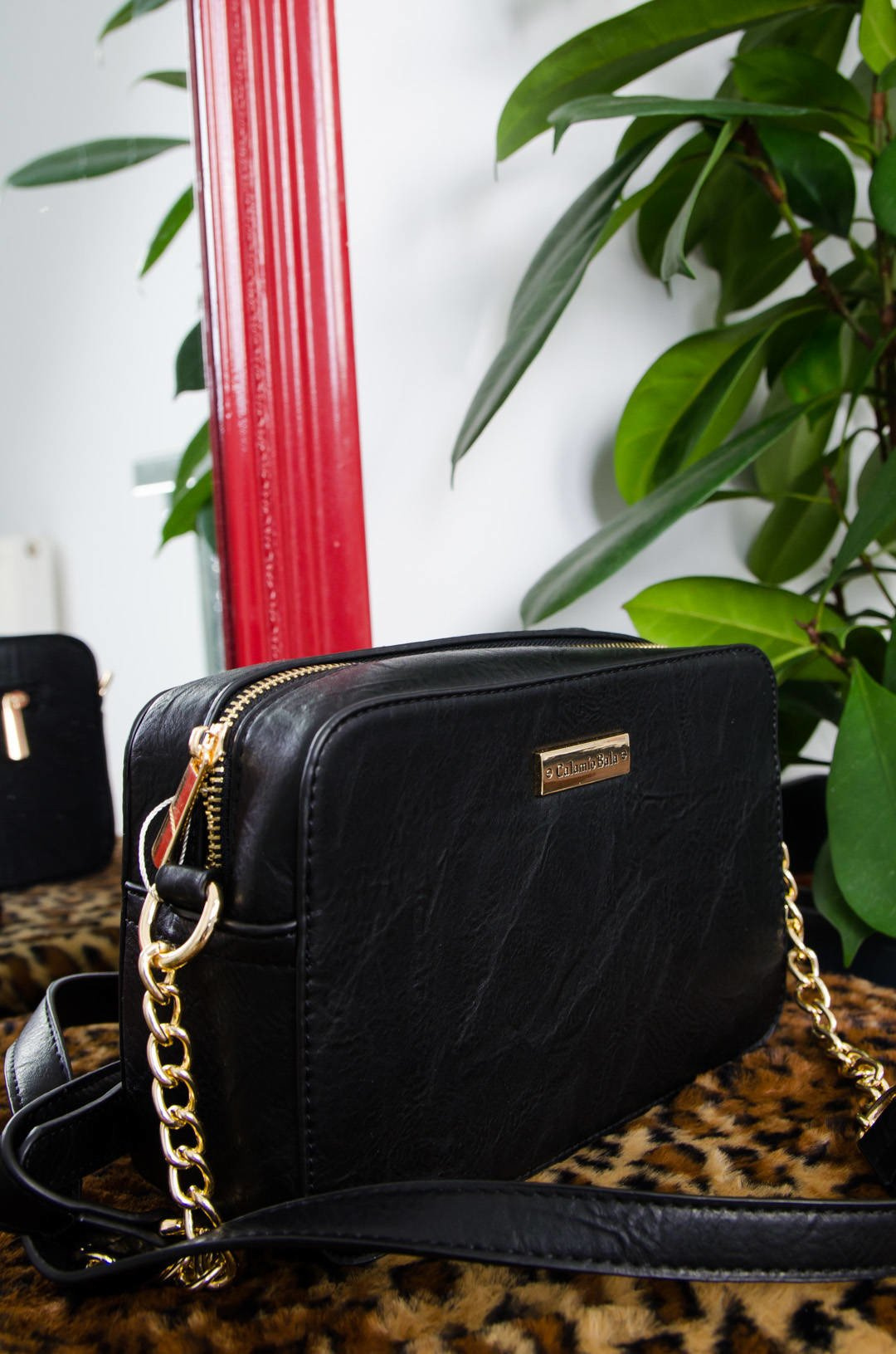 CZARNA TOREBKA TYPU KUFEREK NA ZŁOTYM ŁAŃCUSZKU