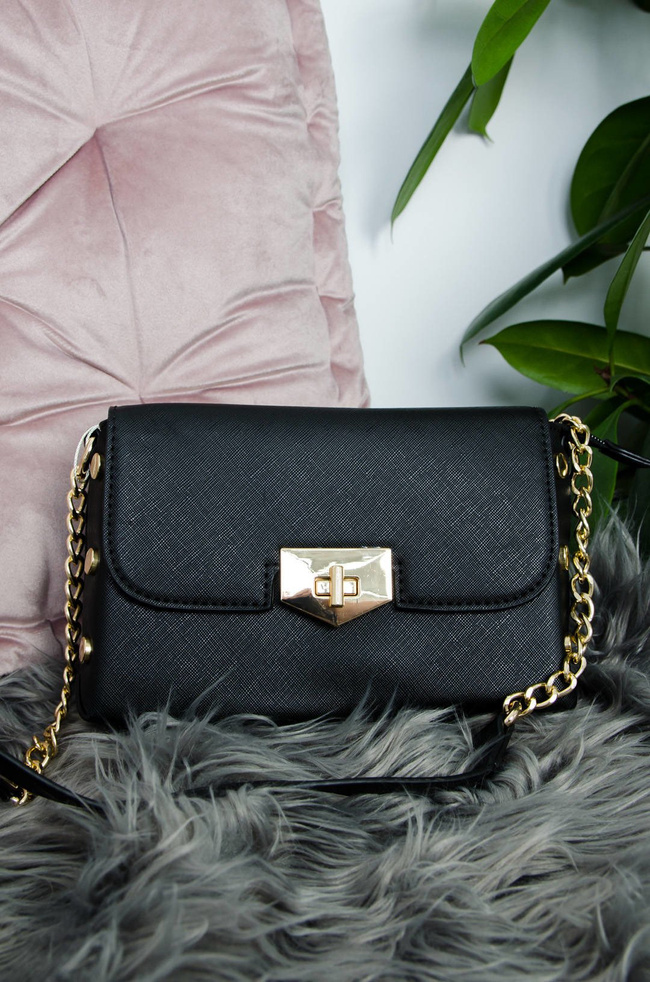 CZARNA TOREBKA LISTONOSZKA ZE ZŁOTYMI GUZIKAMI
