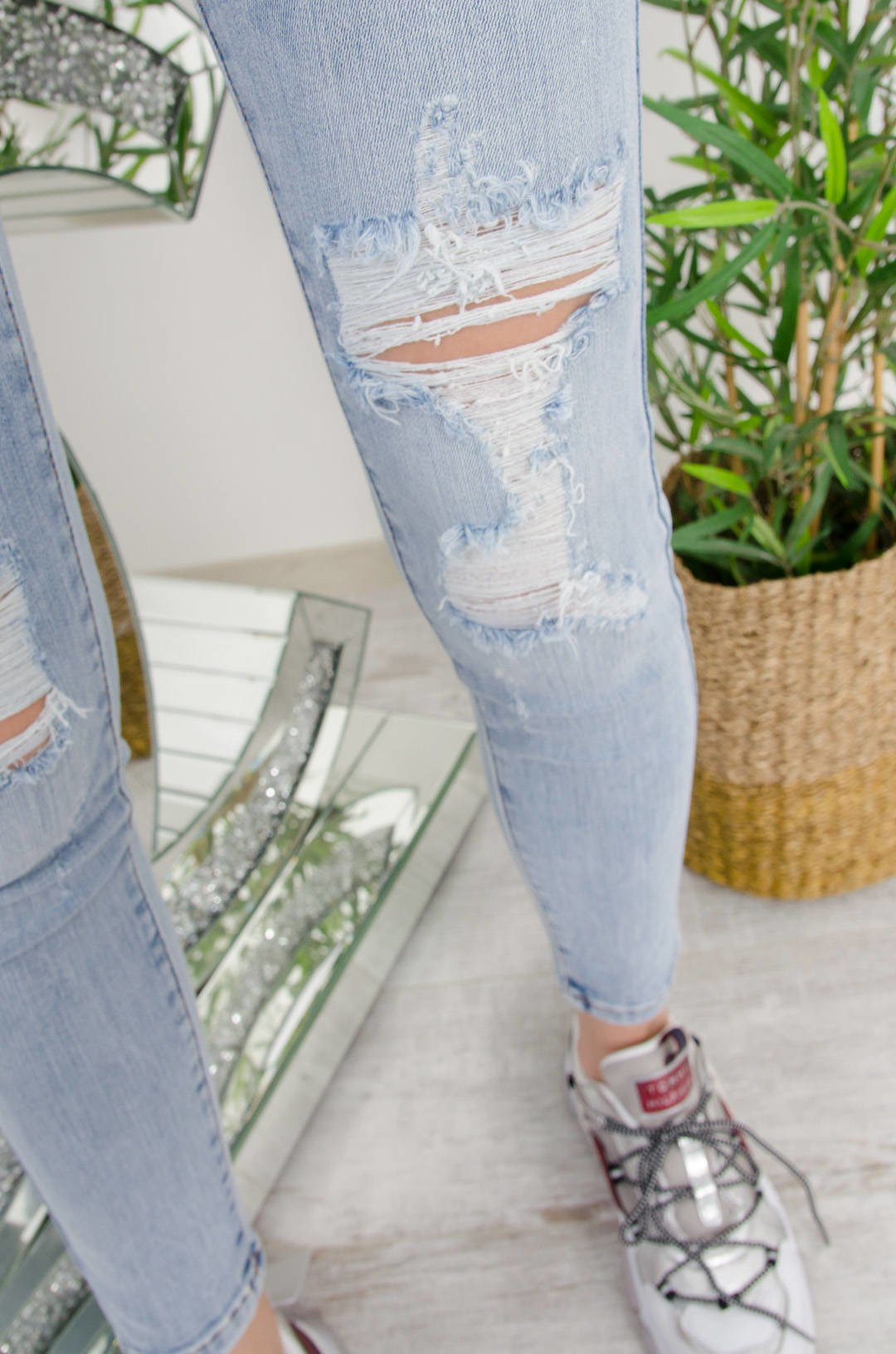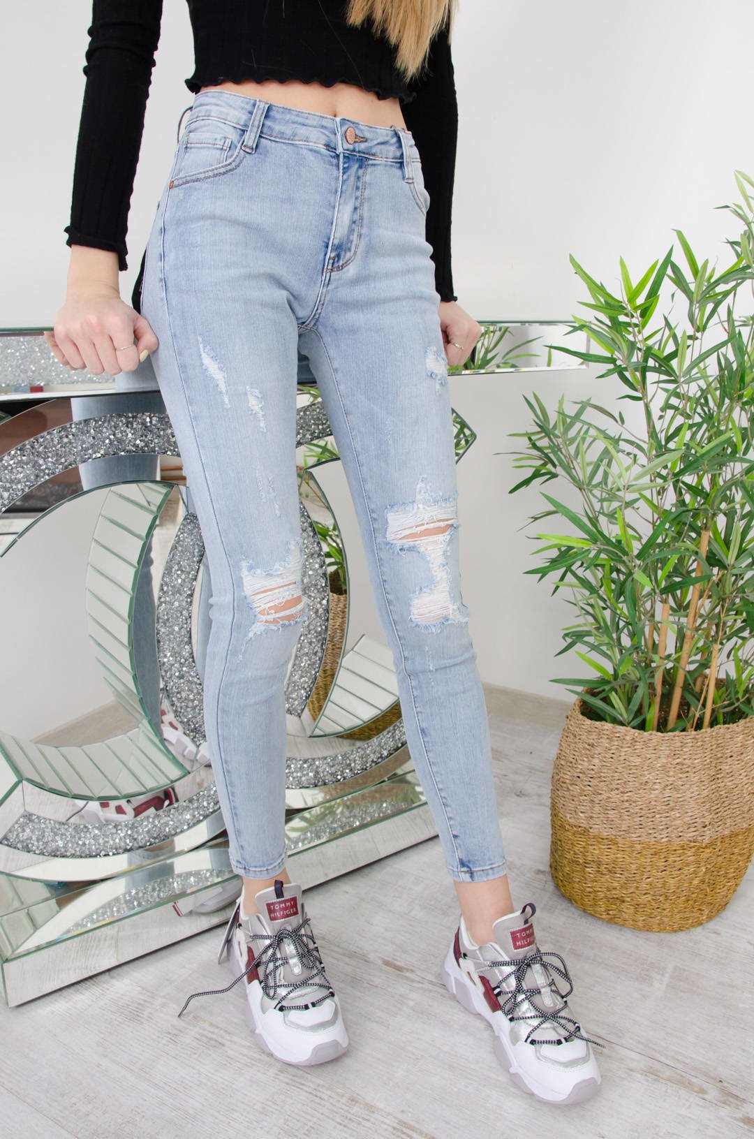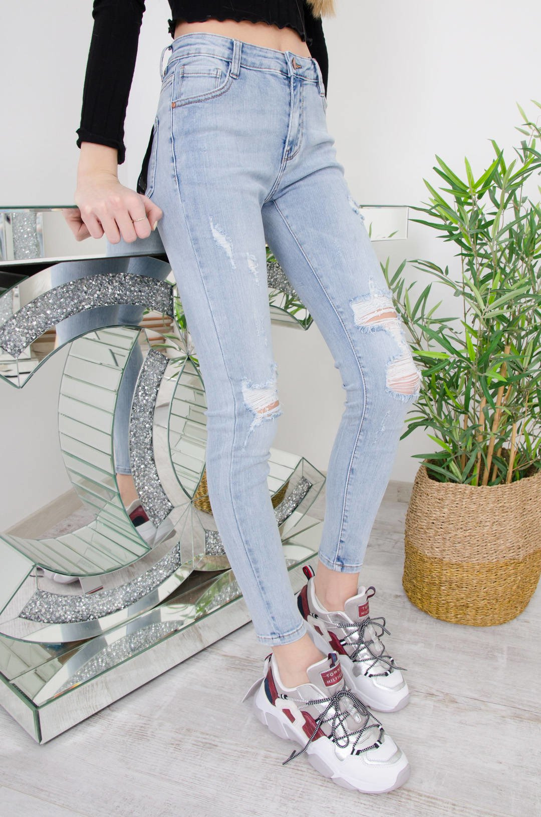 JASNE SPODNIE JEANSOWE Z PRZETARCIAMI