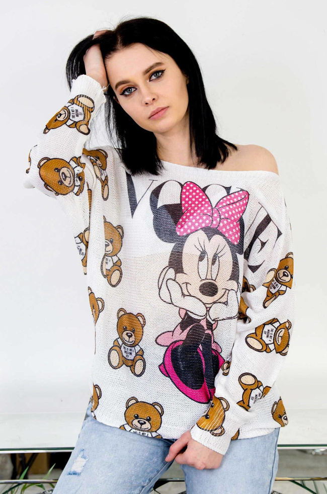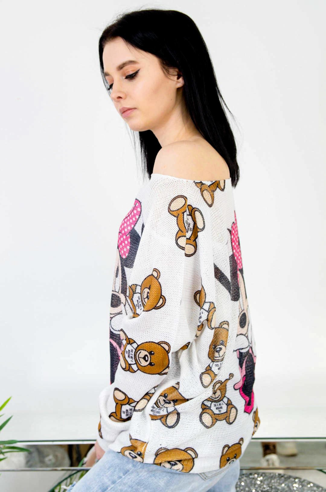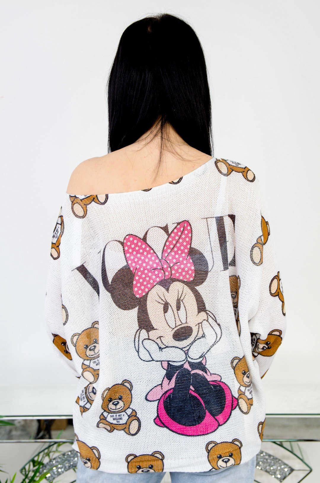 BIAŁA LUŹNA BLUZKA Z MOTYWEM MYSZKI