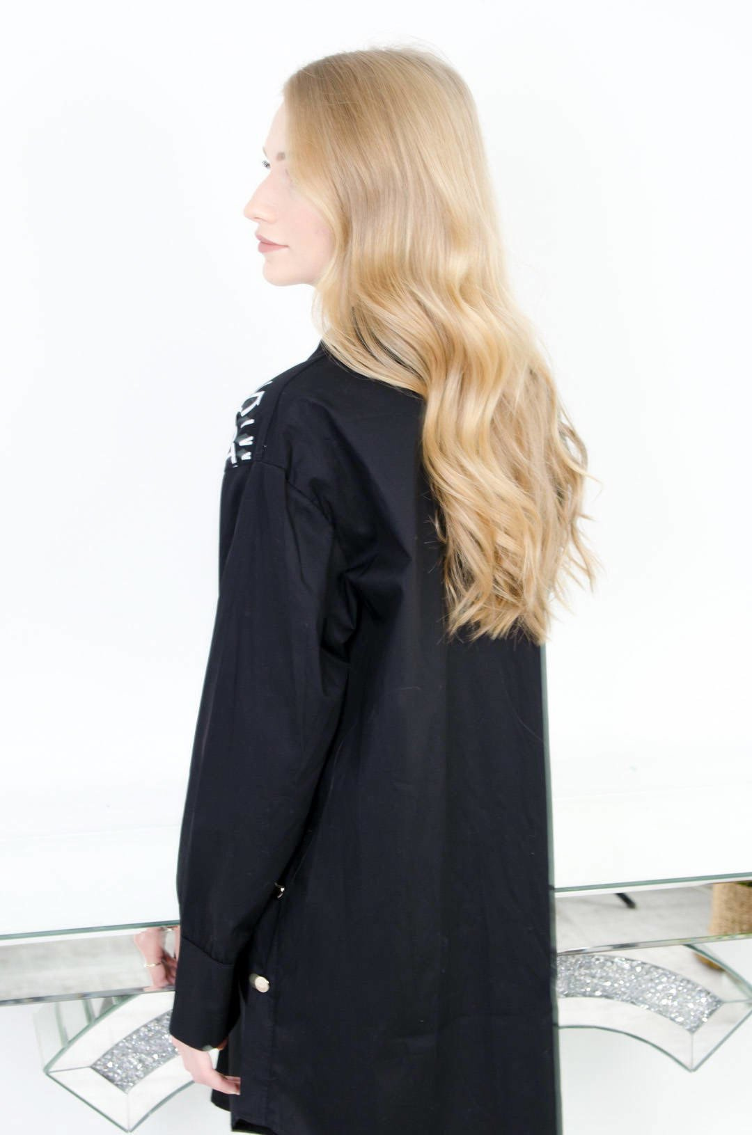 DŁUGA CZARNA KOSZULA Z NAPISAMI