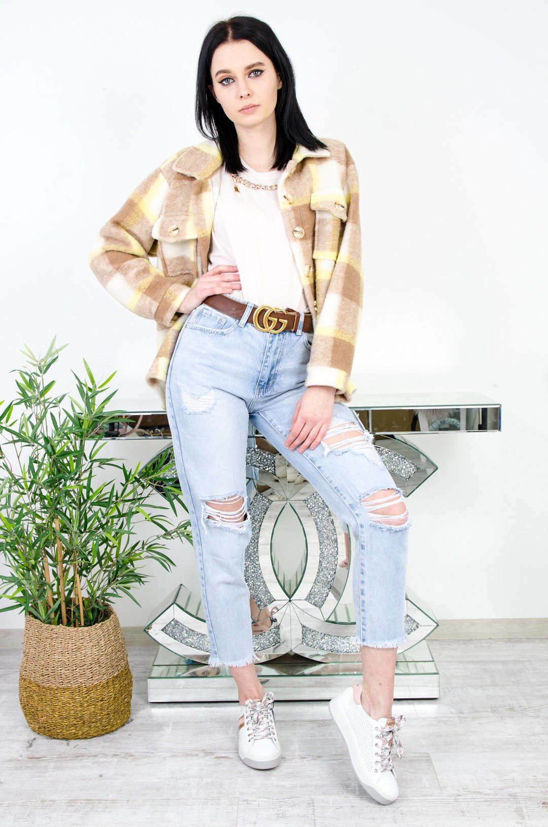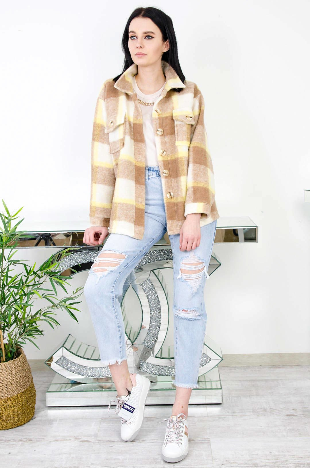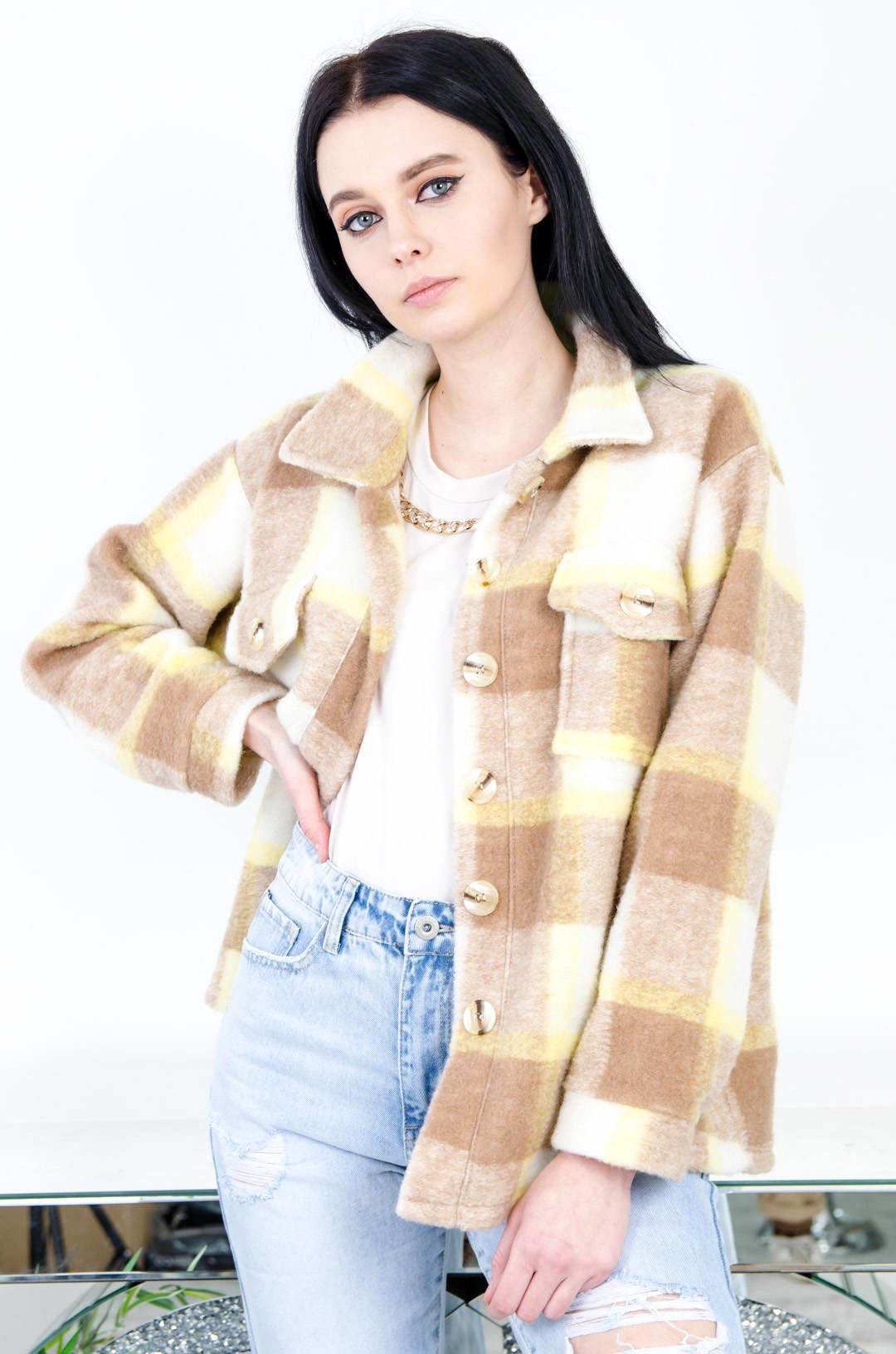 ŻÓŁTY PŁASZCZ KOSZULA W KRATĘ