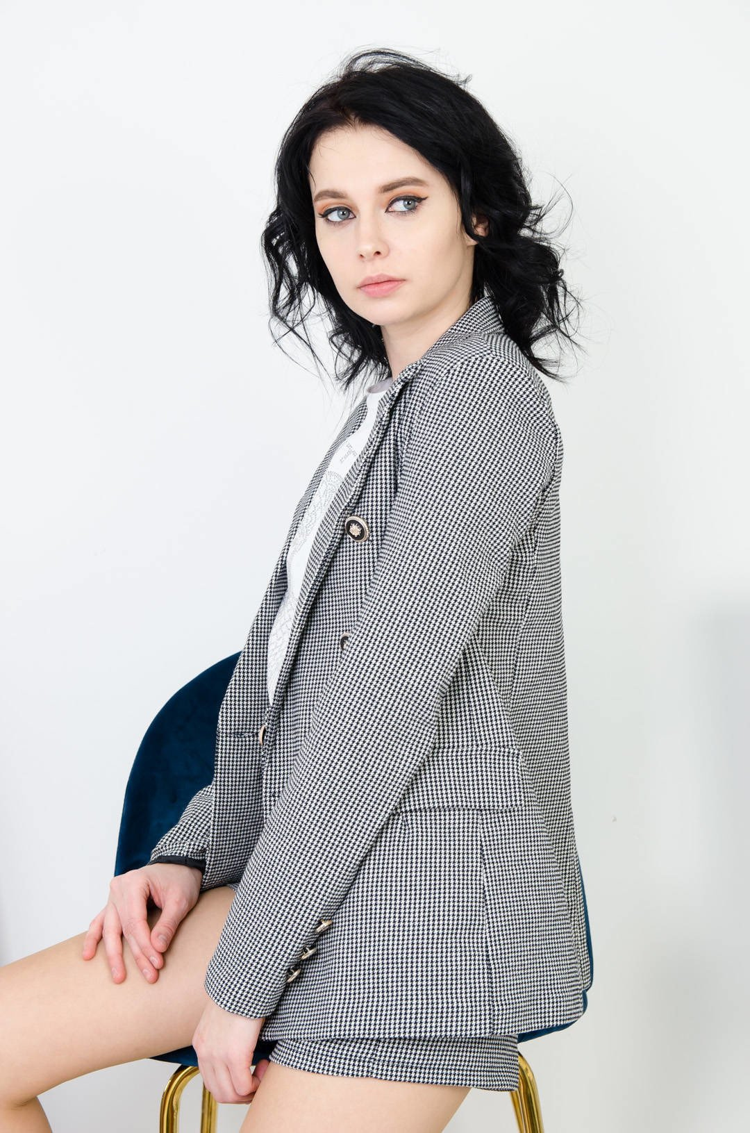 BIAŁO-CZARNA MARYNARKA W PEPITKĘ Z GUZIKAMI (S-XL)