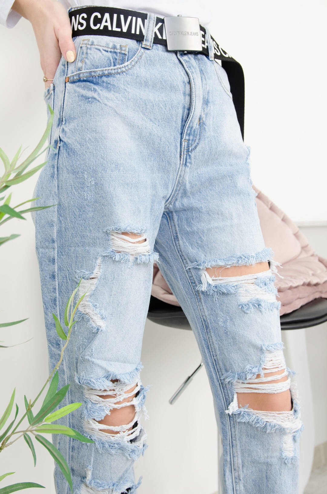 SPODNIE JEANSOWE MOM FIT Z DZIURAMI