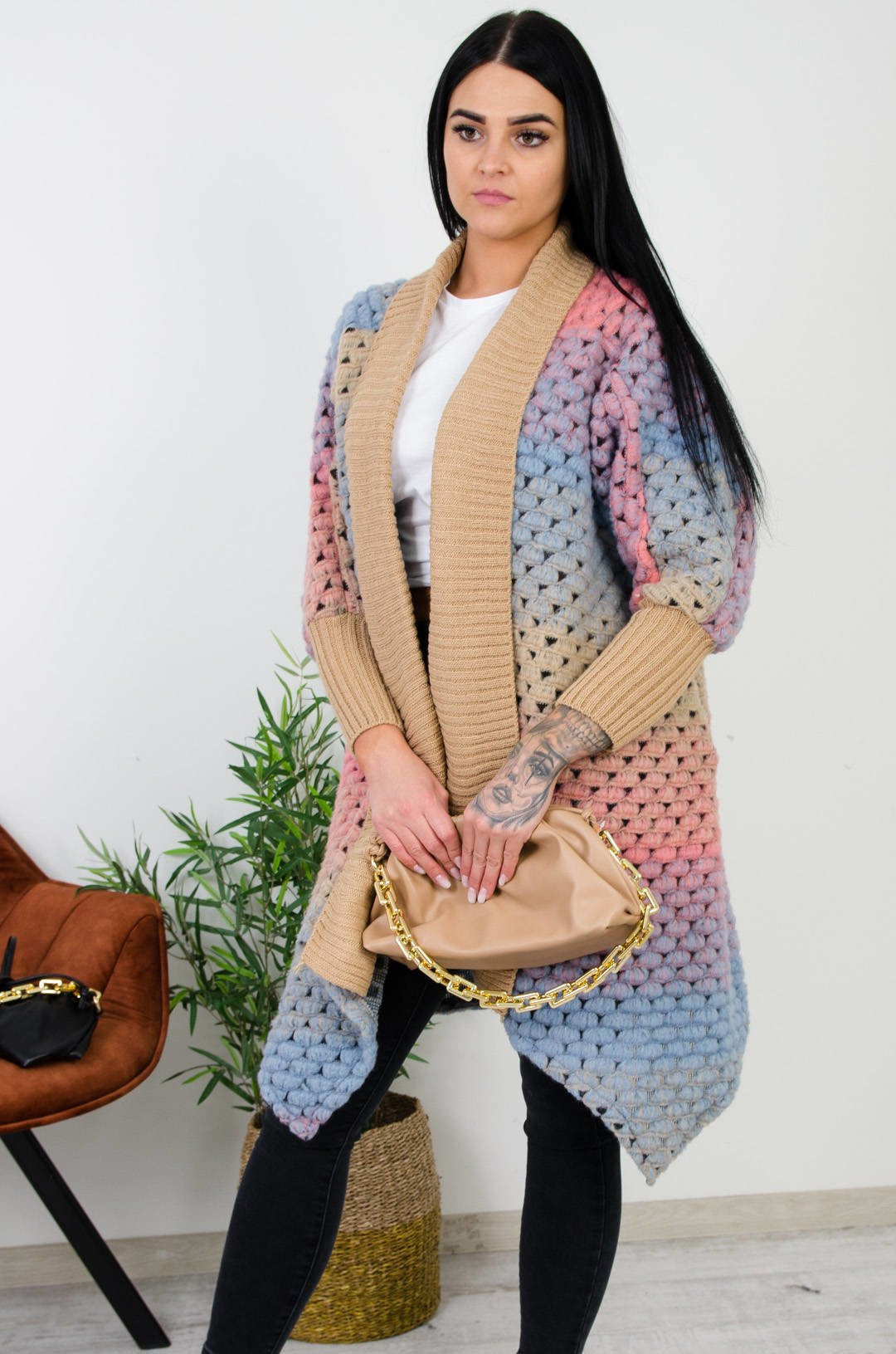 WIOSENNA NARZUTKA MULTICOLOR Z BRĄZOWYM ŚCIĄGACZEM-NIEBIESKA