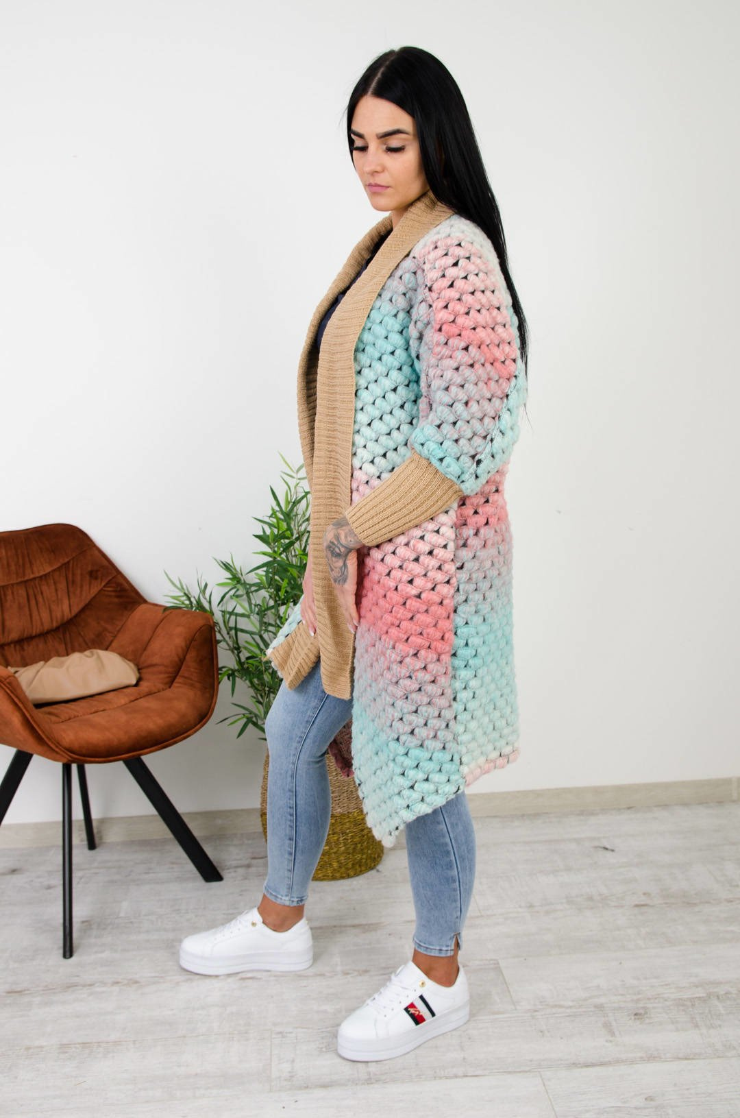 WIOSENNA NARZUTKA MULTICOLOR Z BRĄZOWYM ŚCIĄGACZEM-ZIELONA