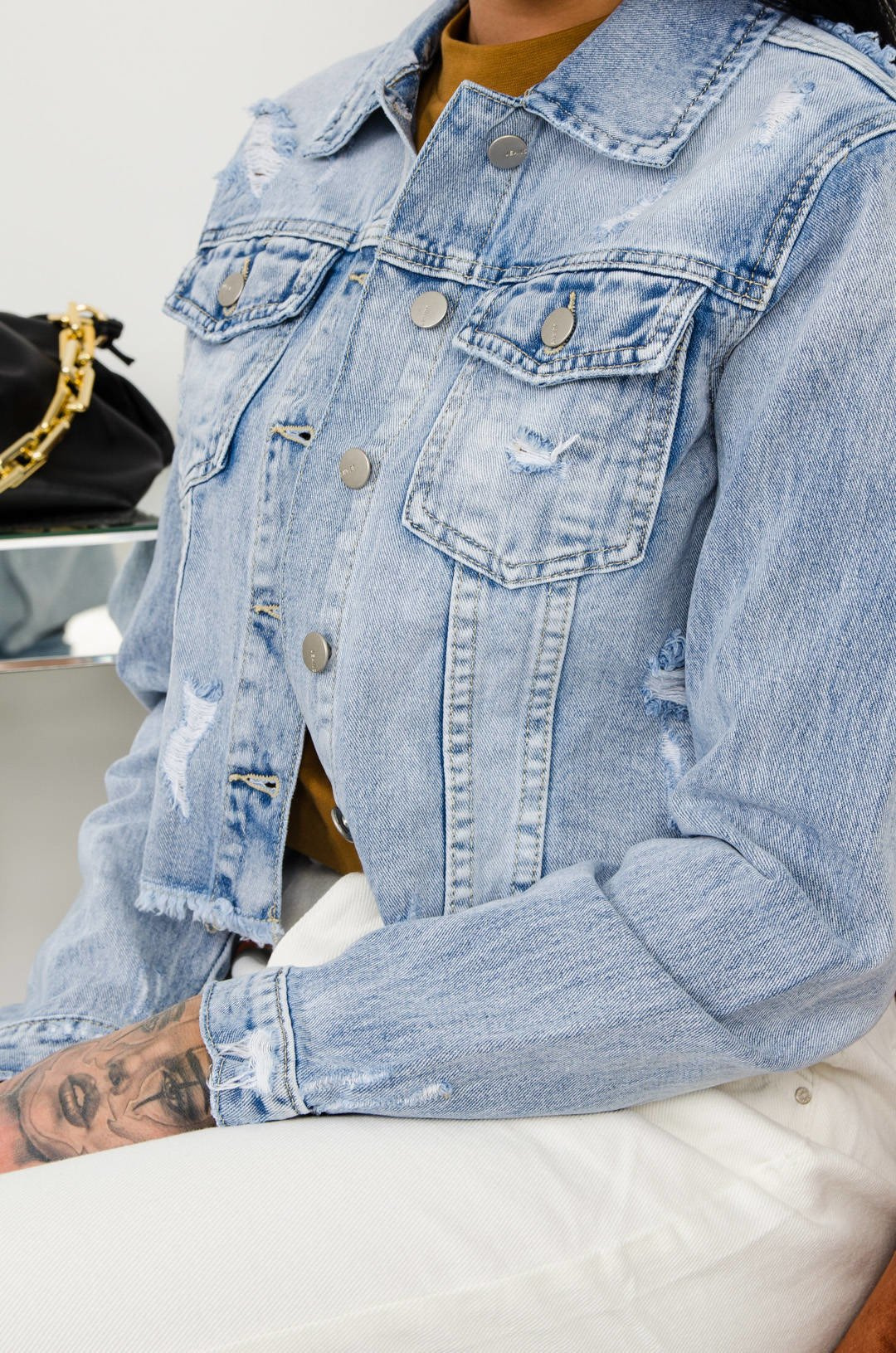 KRÓTKA KURTKA JEANSOWA Z SZARPANIEM NA DOLE