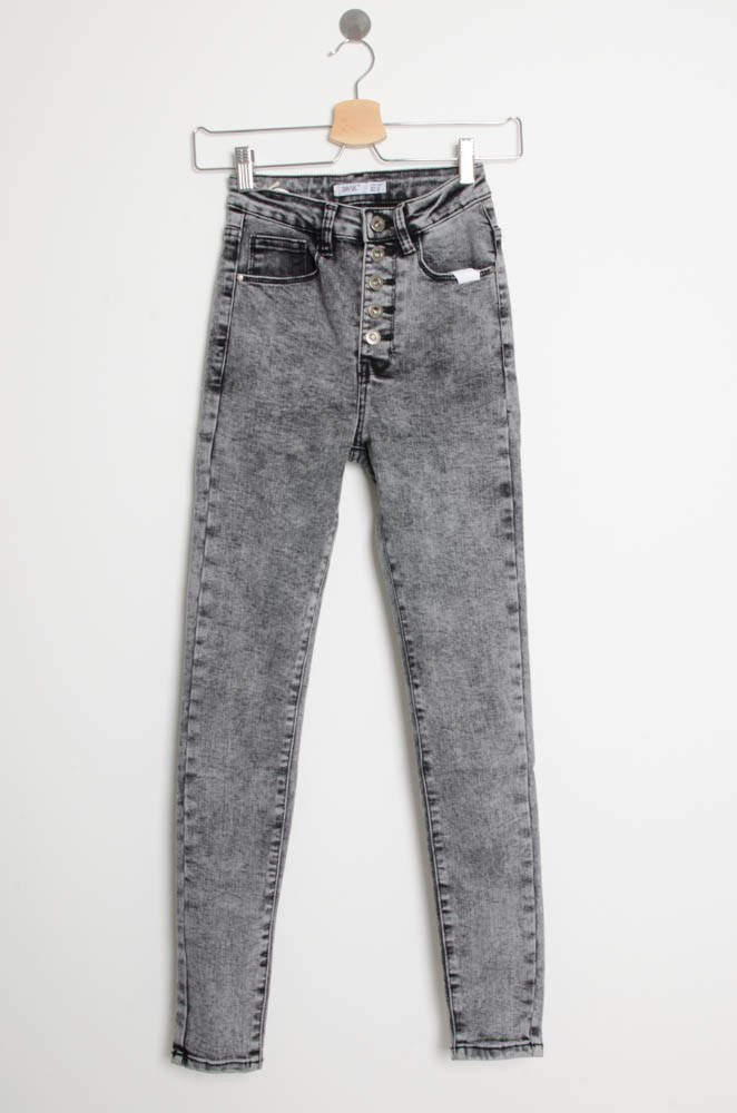 SZARE SPODNIE JEANSOWE Z GUZIKAMI - WYSOKI STAN