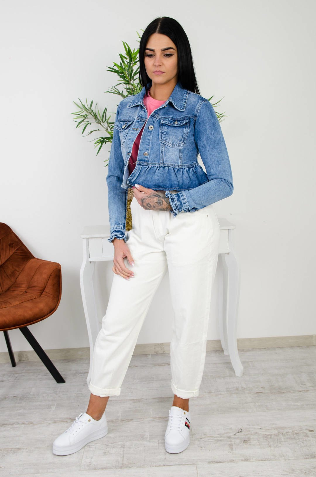 NIEBIESKA KURTKA JEANSOWA Z FALBANKĄ