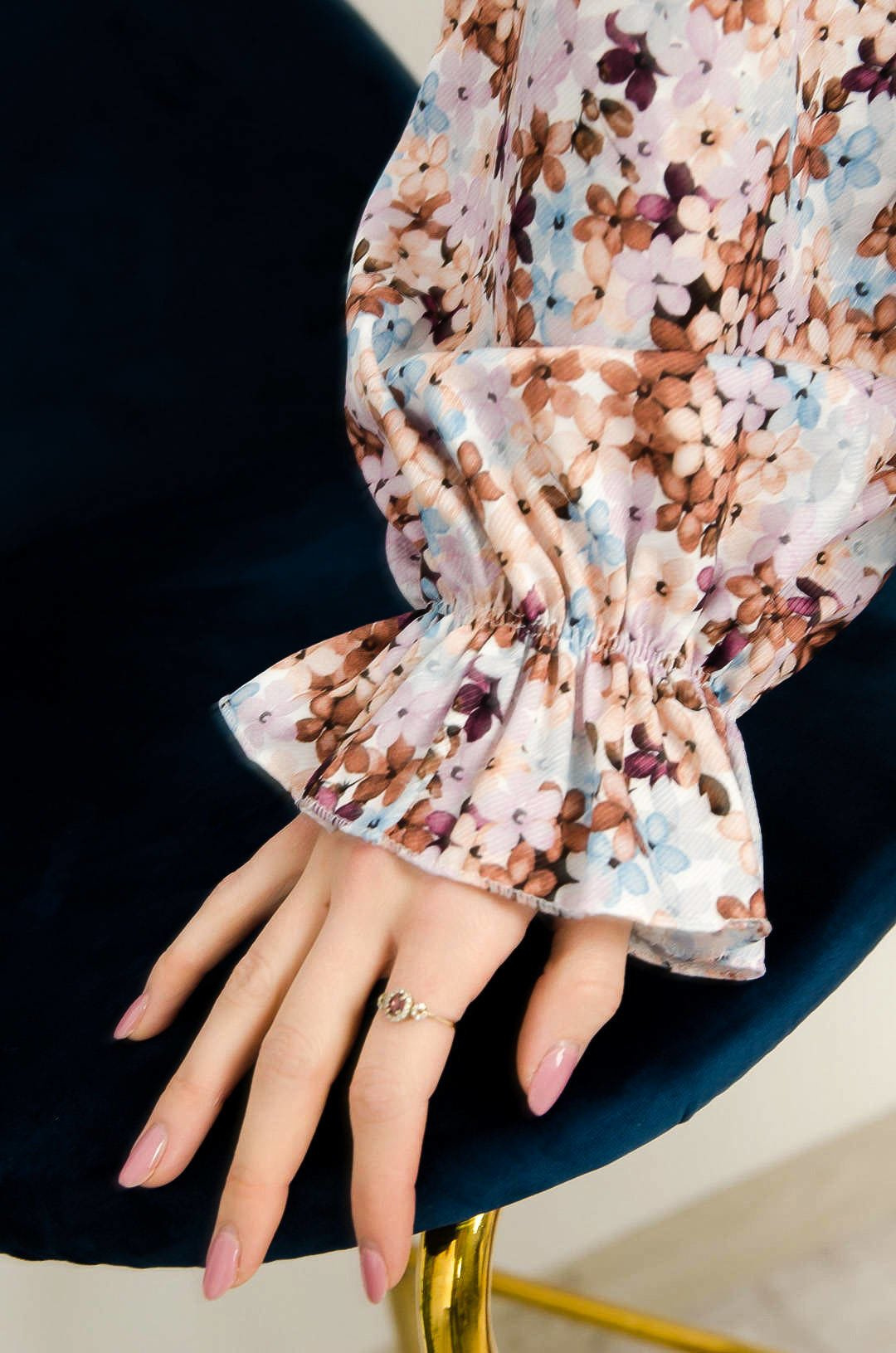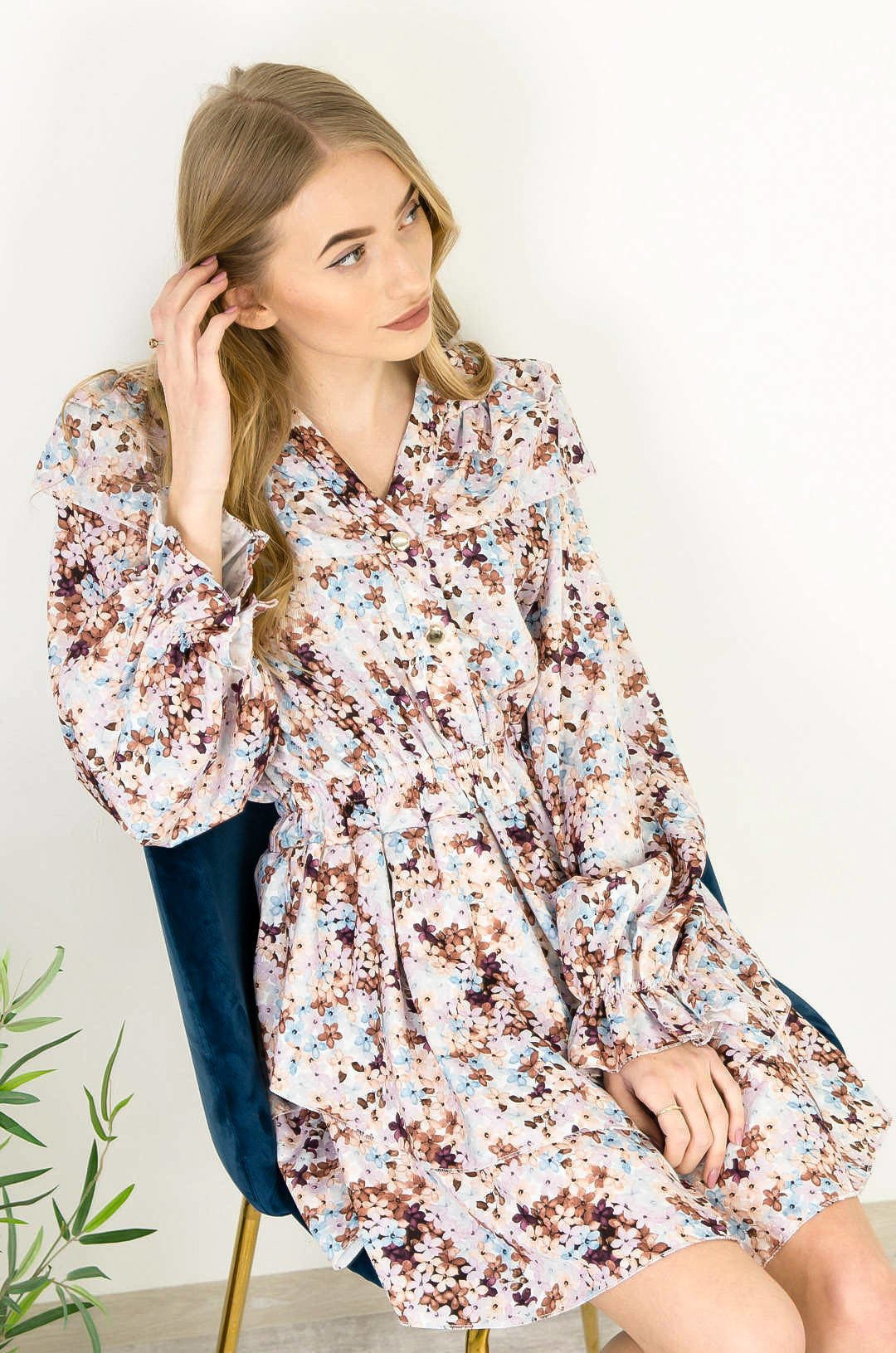 KWIECISTA SUKIENKA Z FALBANAMI ORAZ GUMKĄ W PASIE
