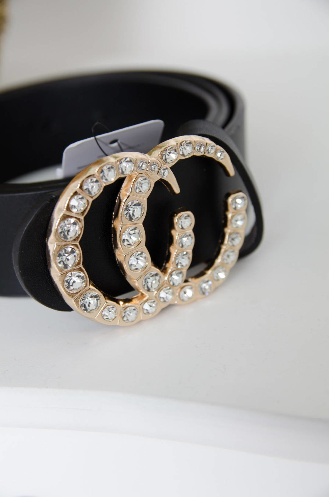 CZARNY SZEROKI PASEK -ZŁOTA KLAMERKA Z CYRKONIAMI