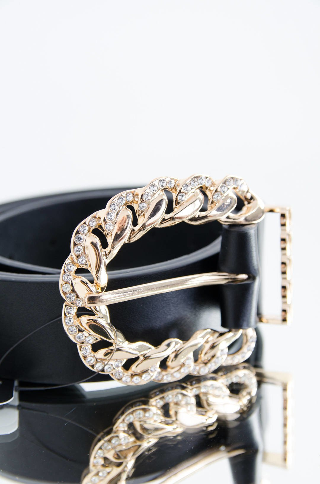 CZARNY PASEK Z OZDOBNĄ KLAMRĄ
