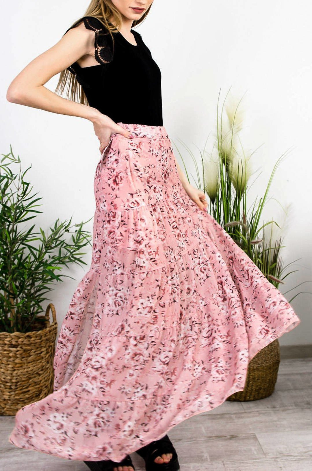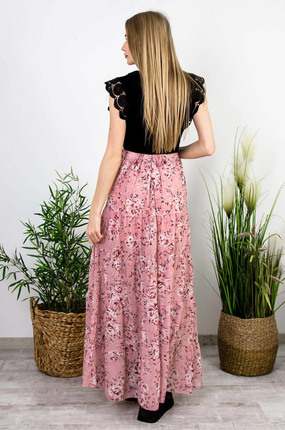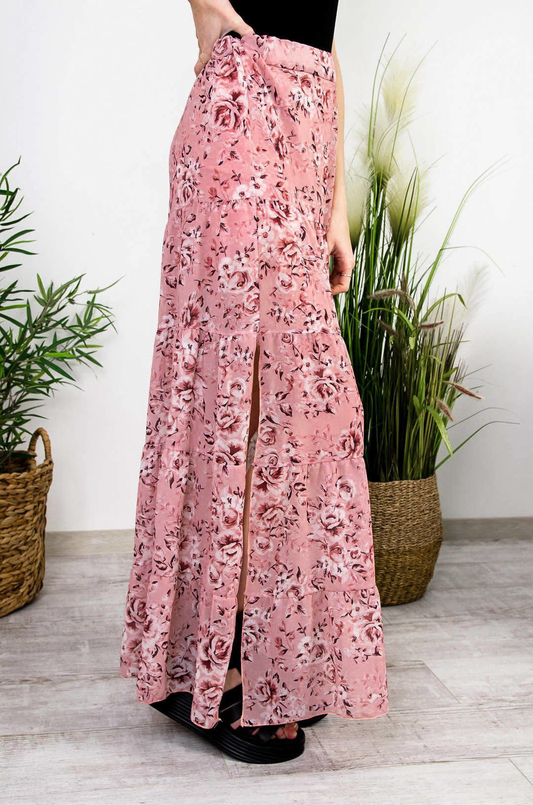 RÓŻOWA SPÓDNICA MAXI W KWIATY Z ROZCIĘCIEM