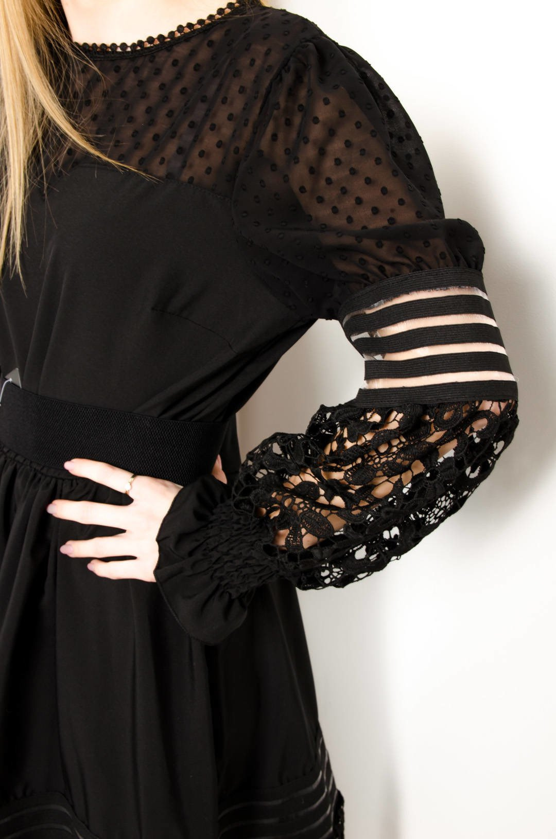 CZARNA SUKIENKA Z ŁĄCZONYCH TKANIN-ROZKLOSZOWANY DÓŁ