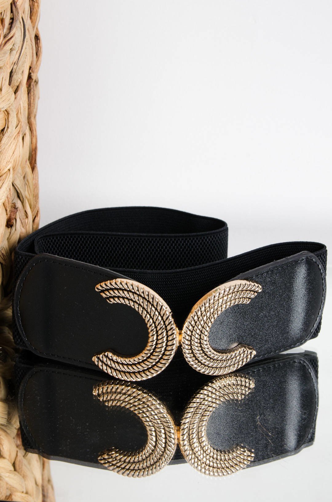 CZARNY PASEK NA GUMIE-ZŁOTE PLECIONE ZAPIĘCIE