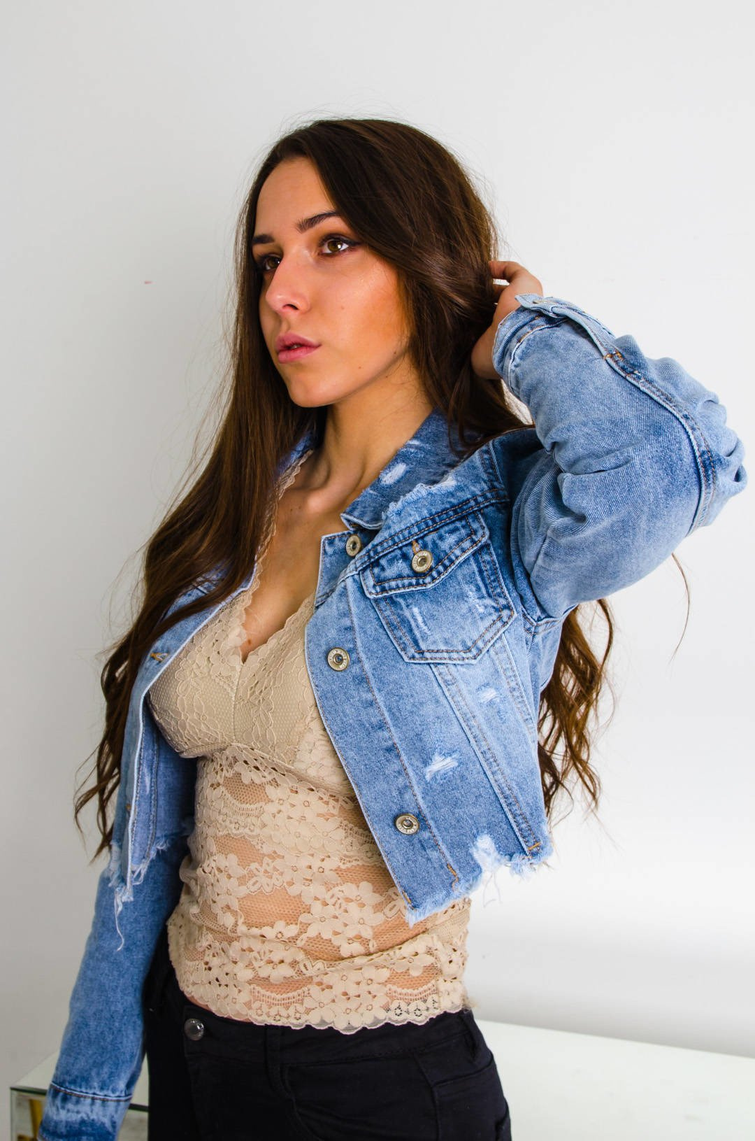 NIEBIESKA KURTKA JEANSOWA KRÓTKA-POSZARPANA