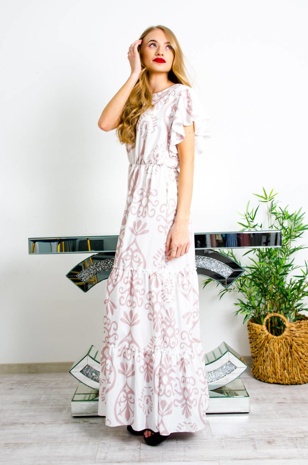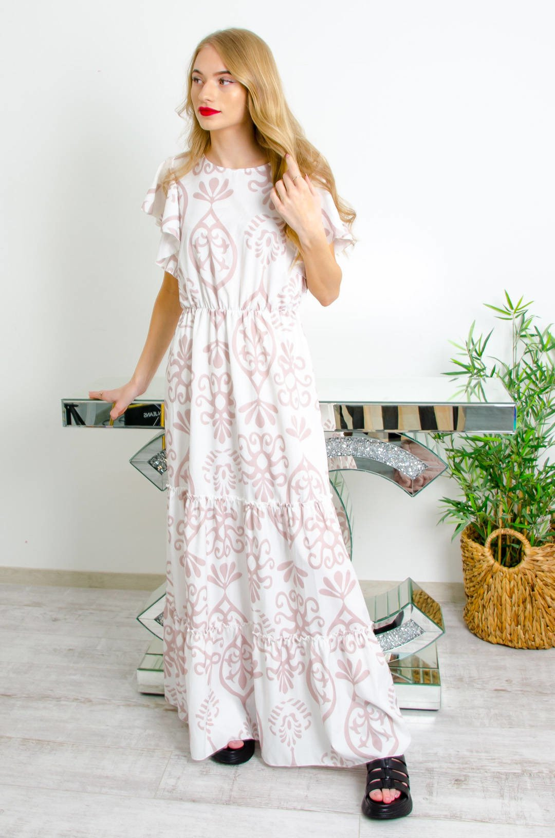 DŁUGA BIAŁO-BEŻOWA SUKIENKA MAXI