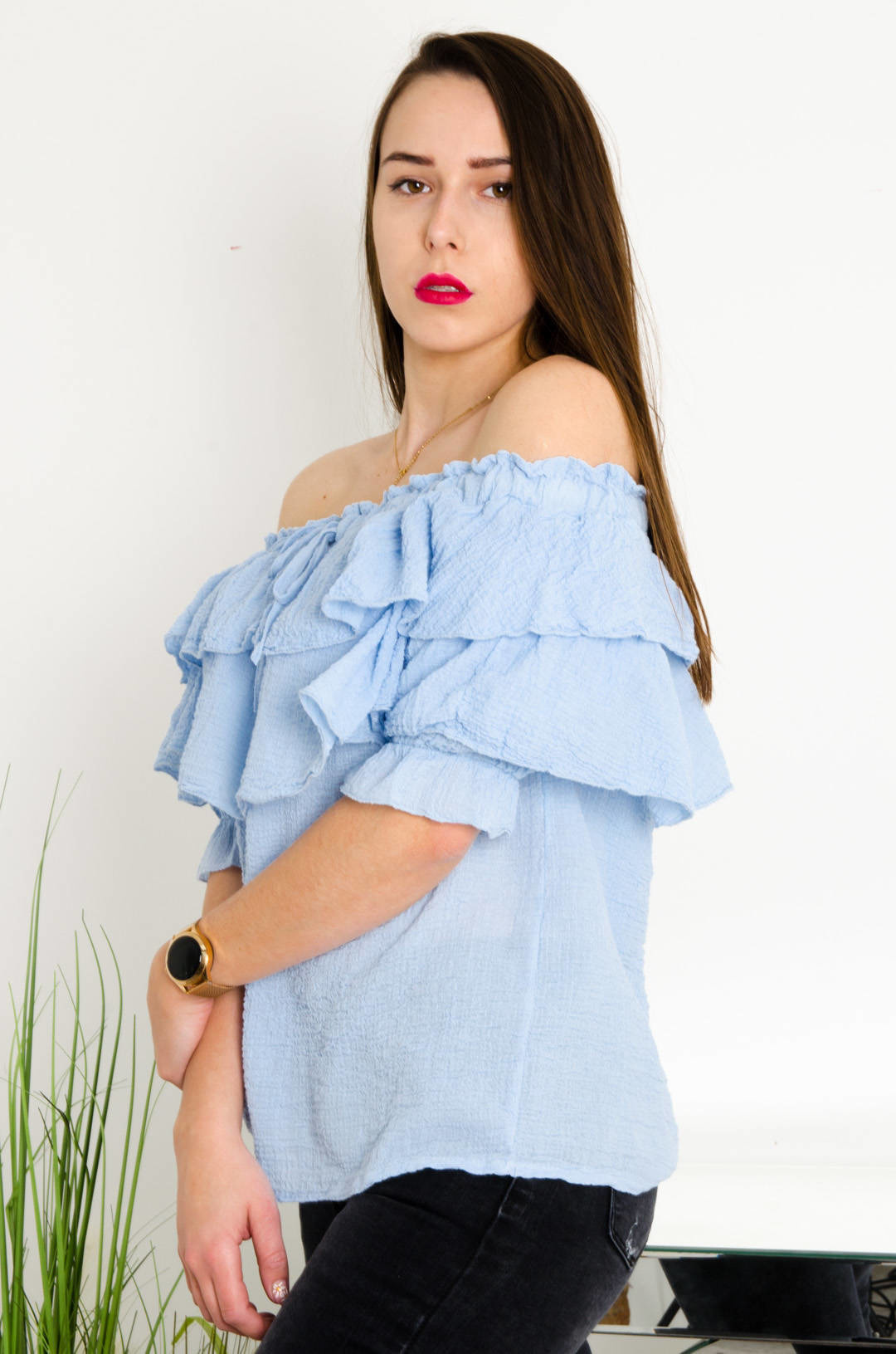 NIEBIESKA MUŚLINOWA BLUZKA HISZPANKA