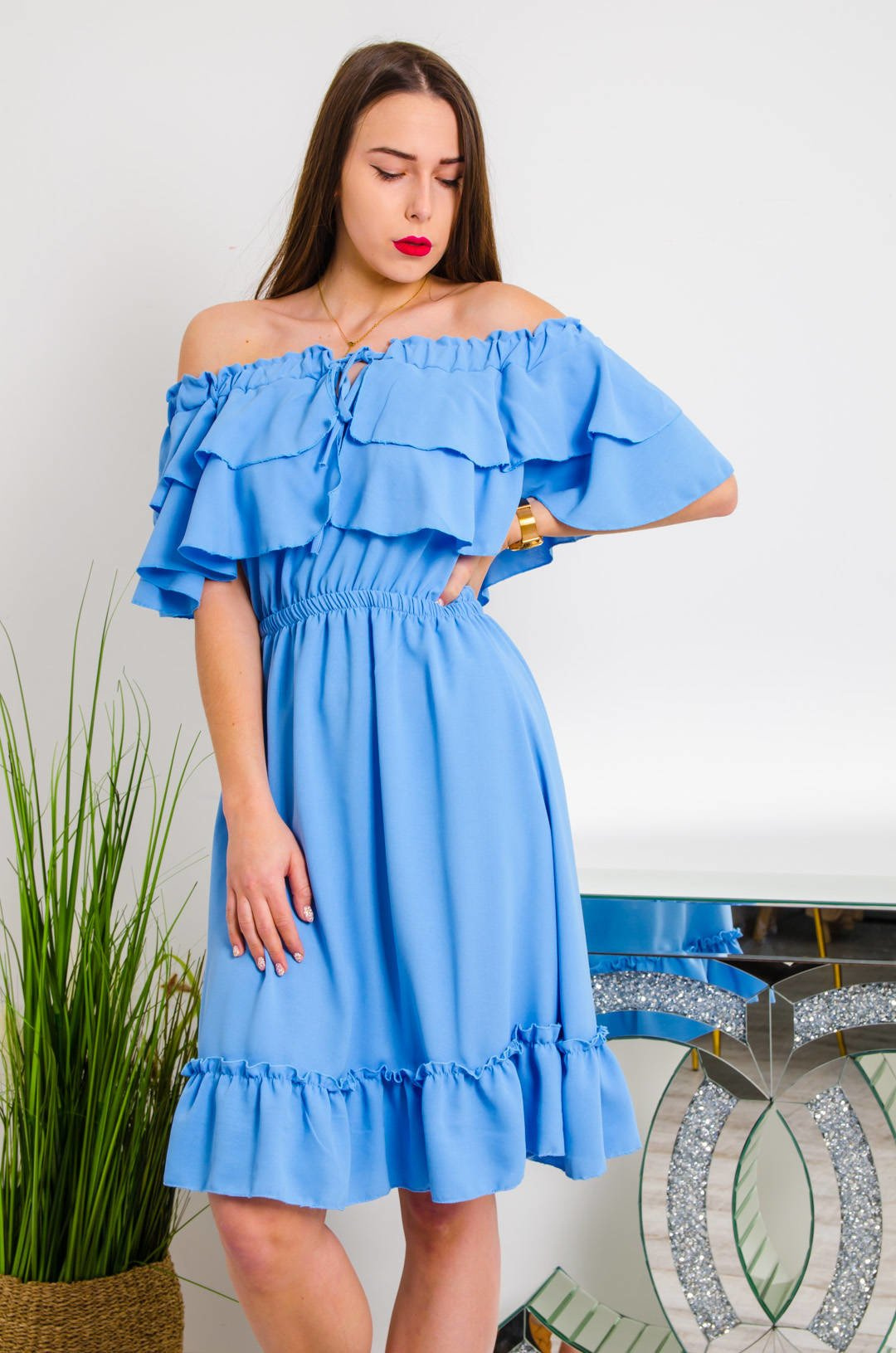 NIEBIESKA SUKIENKA HISZPANKA Z FALBANKĄ