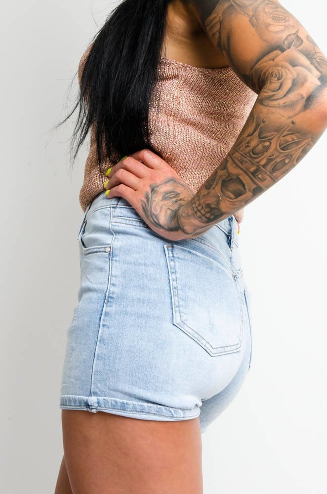 JEANSOWE SZORTY Z WYSOKIM STANEM