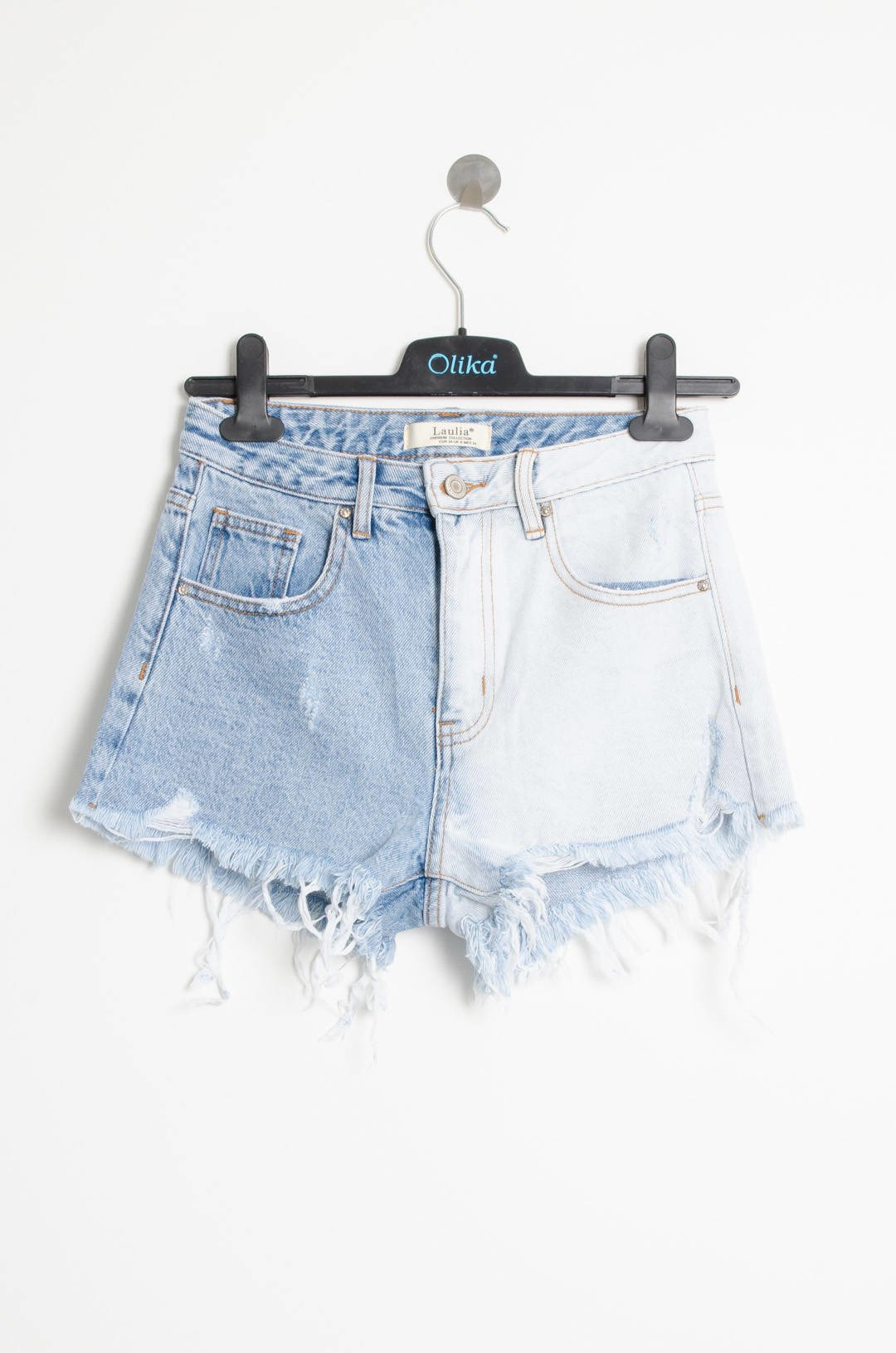 JASNE SZORTY JEANSOWE Z SZARPANIAMI