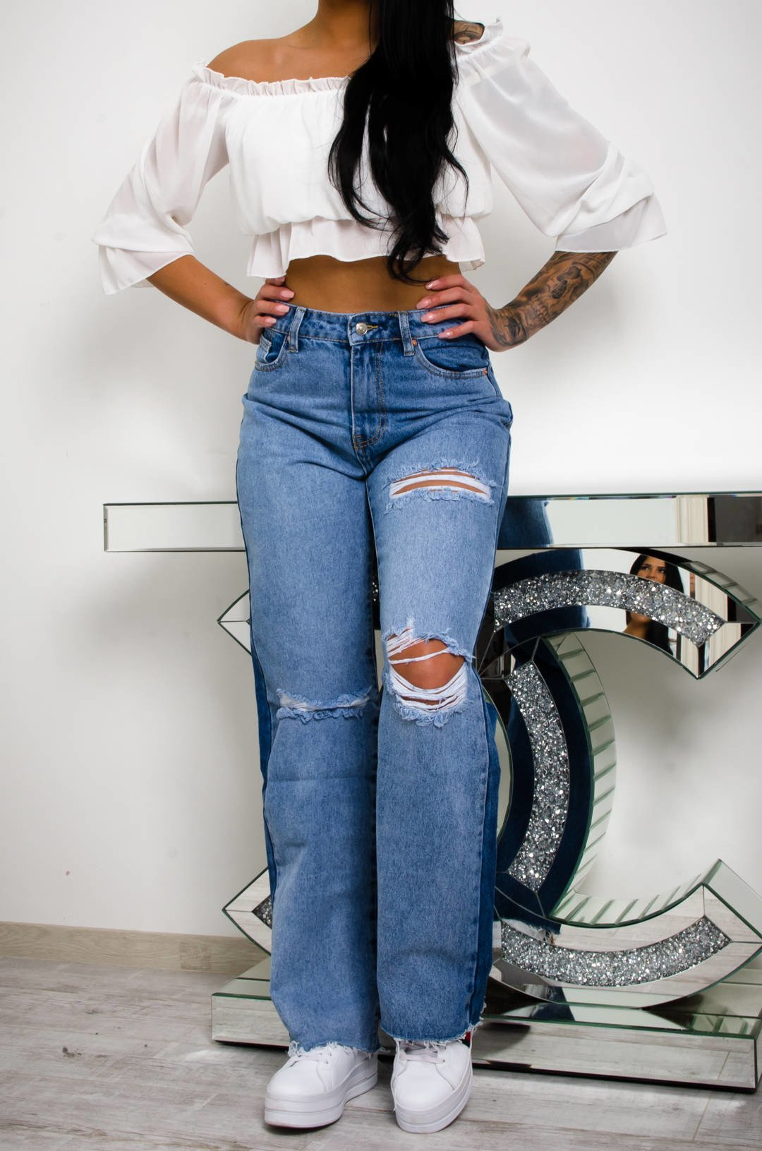 SPODNIE JEANSOWE Z SZEROKIMI NOGAWKAMI I WYSOKIM STANEM - WIDE LEG