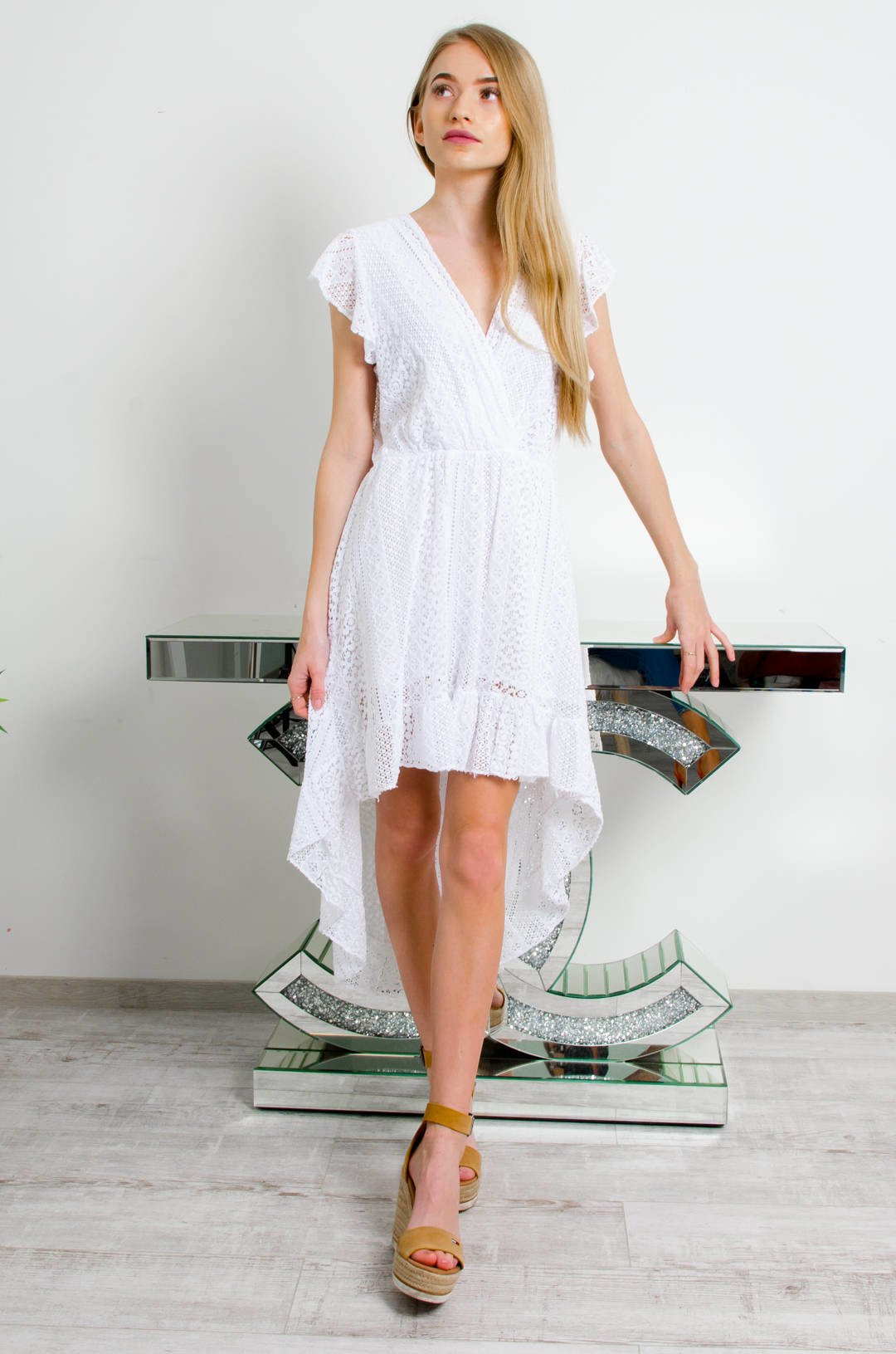 BIAŁA KORONKOWA SUKIENKA Z DŁUŻSZYM TYŁEM.