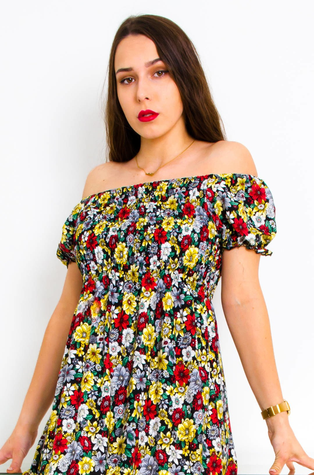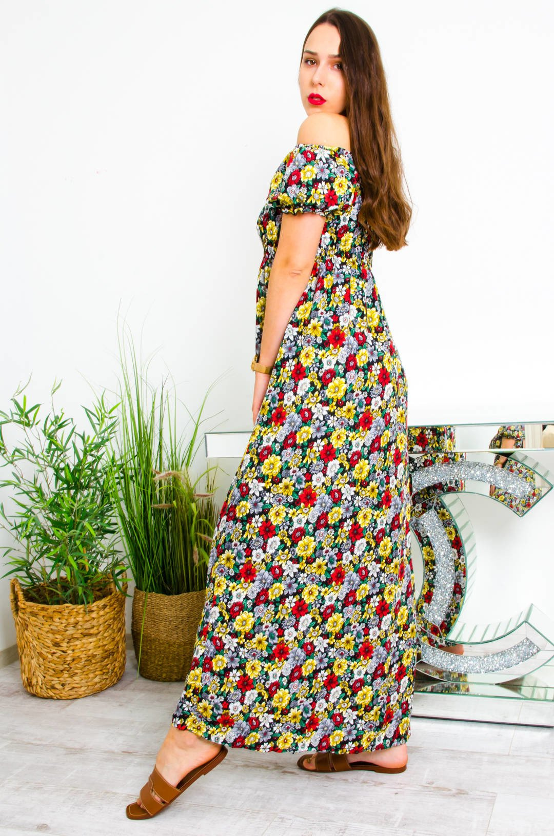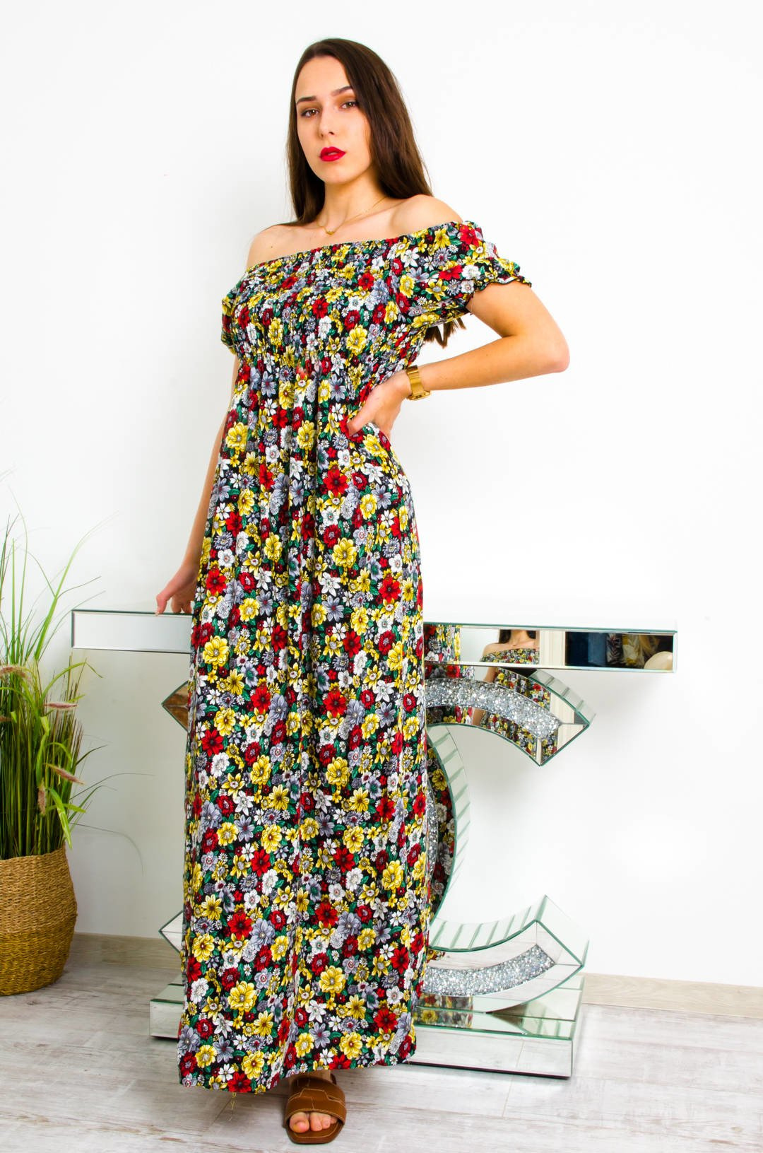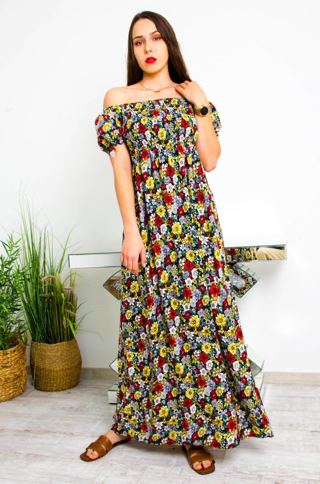 CZARNA DŁUGA SUKIENKA HISZPANKA W KWIATY