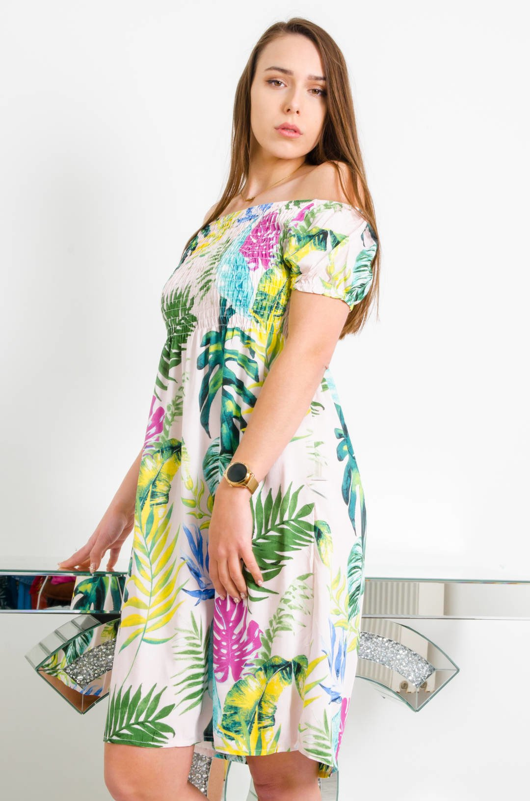 SUKIENKA HISZPANKA Z MOTYWEM KWIATÓW W KOLORZE JASNO-RÓŻOWYM