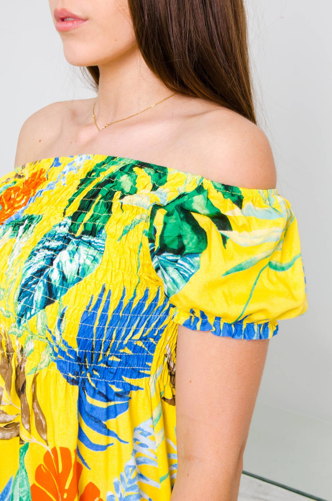 SUKIENKA HISZPANKA Z MOTYWEM KWIATÓW W KOLORZE ŻÓŁTYM