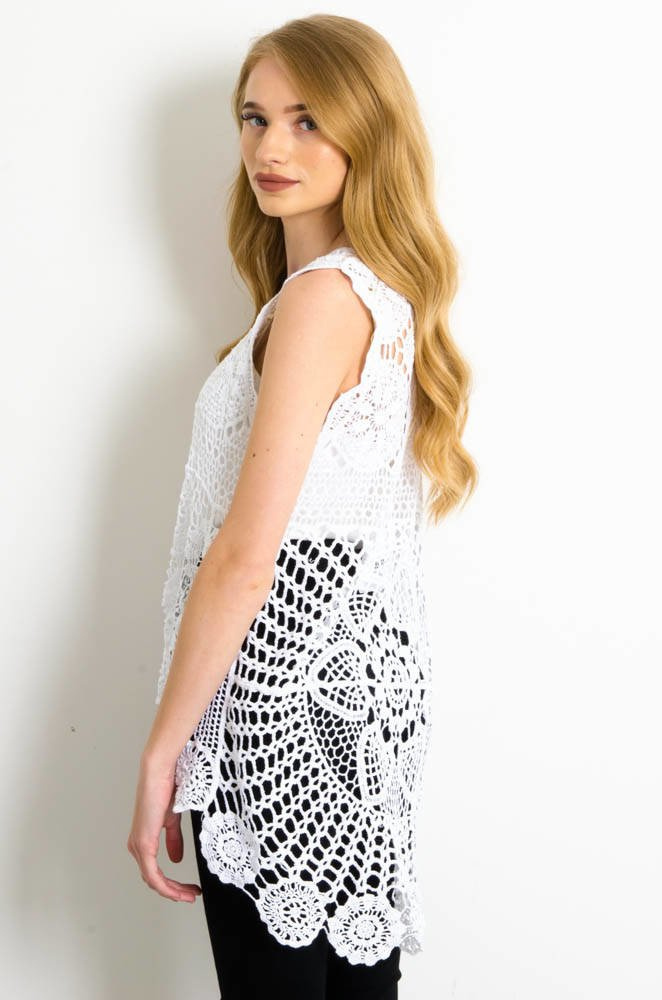 BIAŁA AŻUROWA BLUZKA Z DŁUŻSZYM TYŁEM