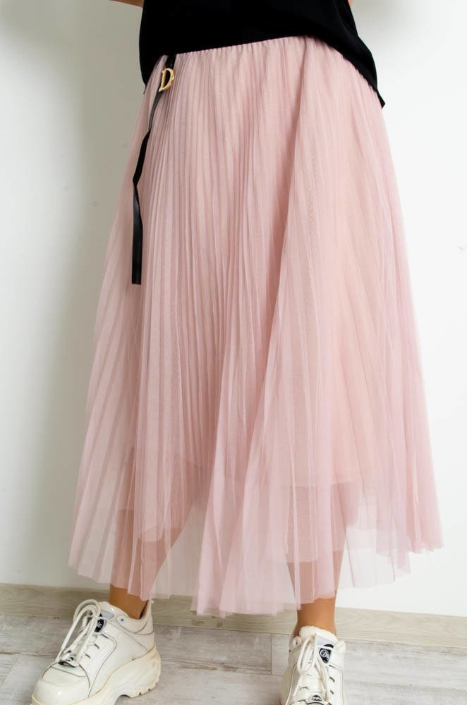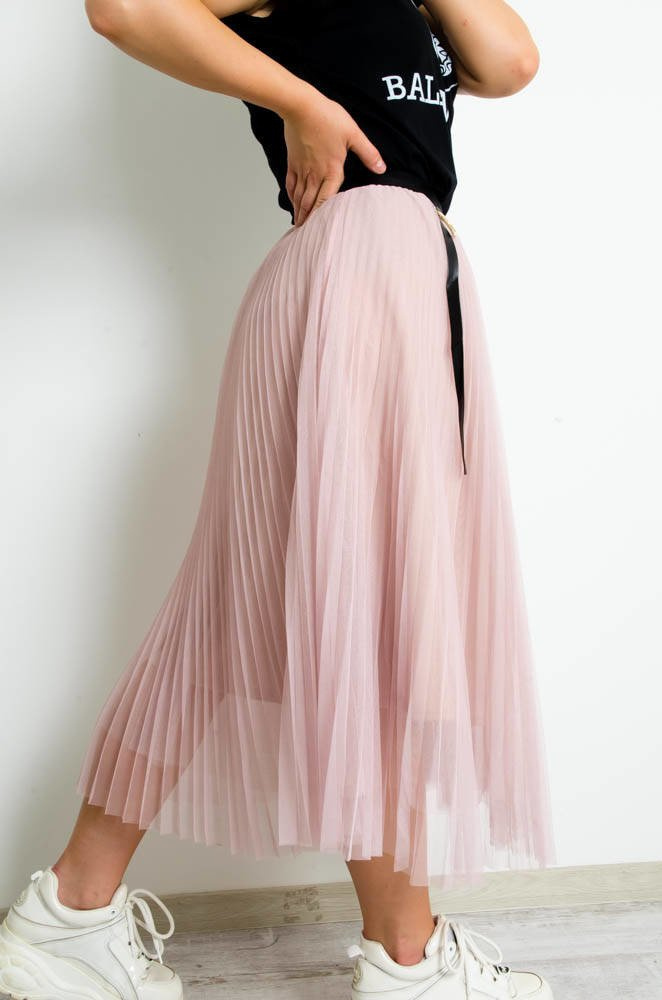RÓŻOWA PLISOWANA SPÓDNICA MIDI Z TIULU