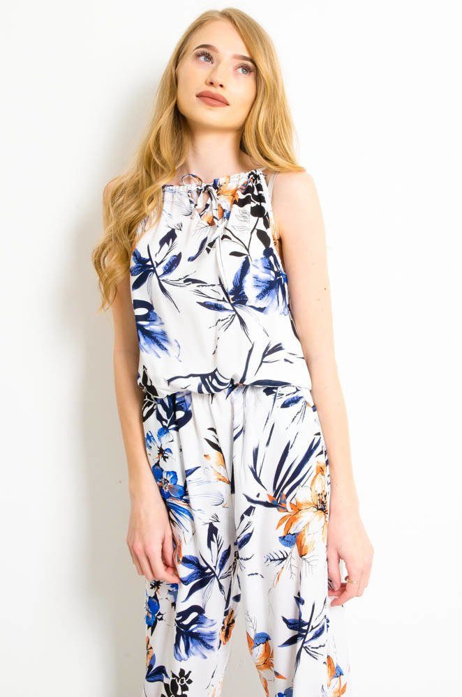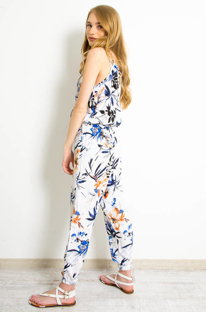 DŁUGI KOMBINEZON NA CIENKICH RAMIĄCZKACH W KWIATY - BIAŁY