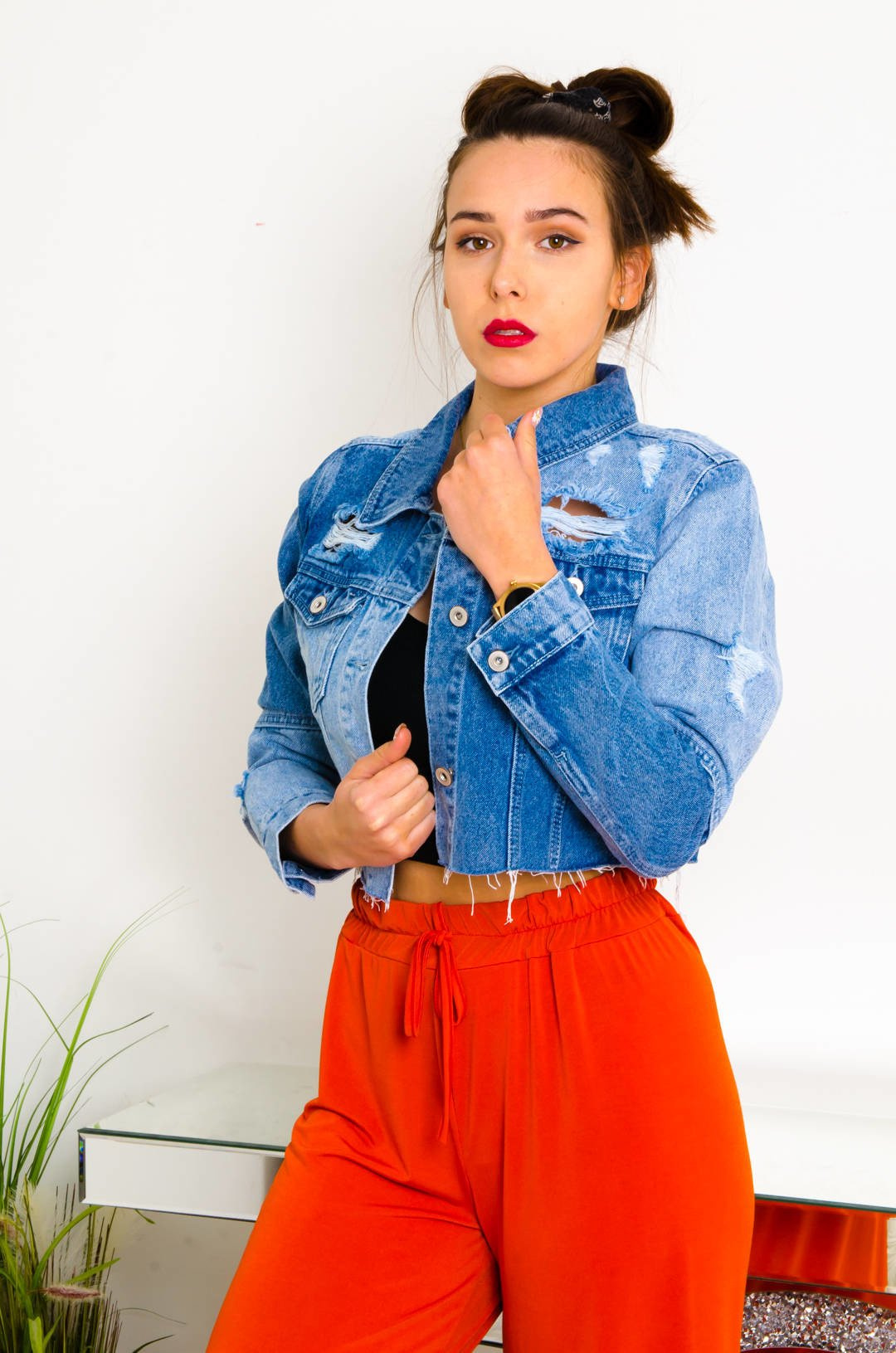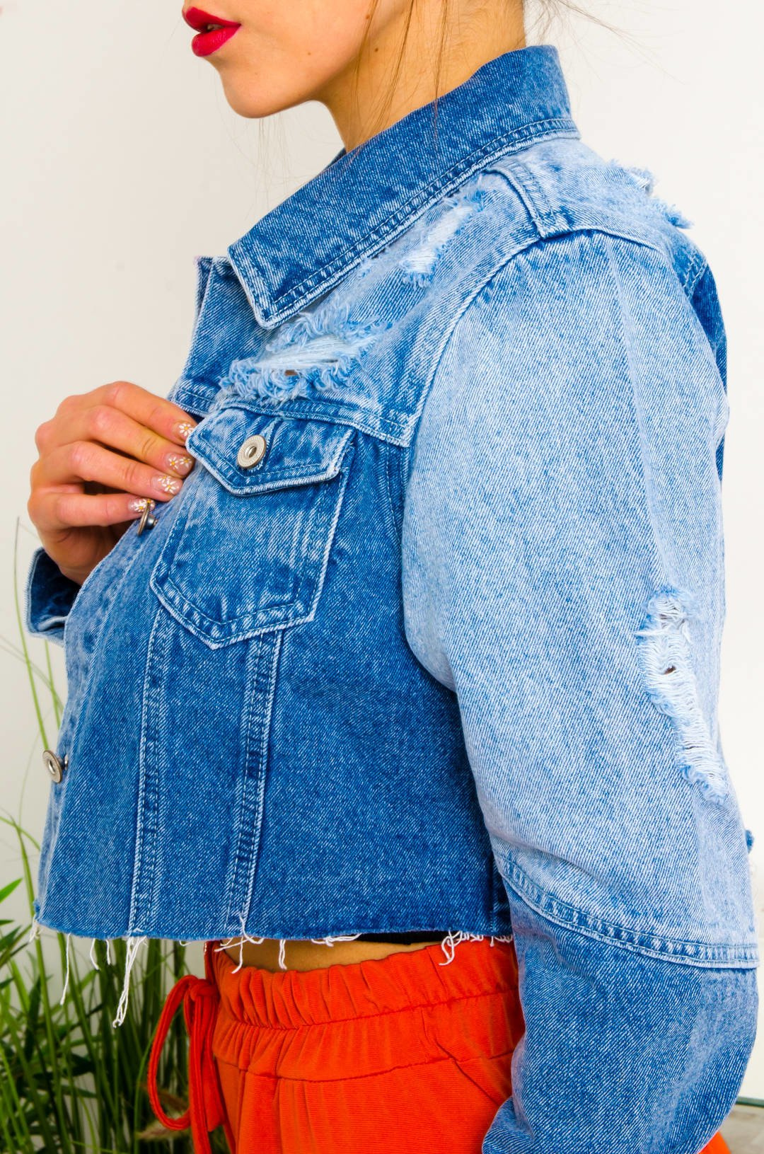 KRÓTKA KURTKA JEANSOWA Z ŁĄCZONYCH MATERIAŁÓW