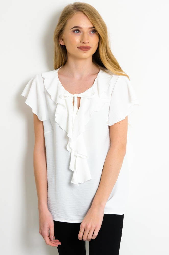 BIAŁA BLUZKA KOSZULOWA Z ŻABOTEM