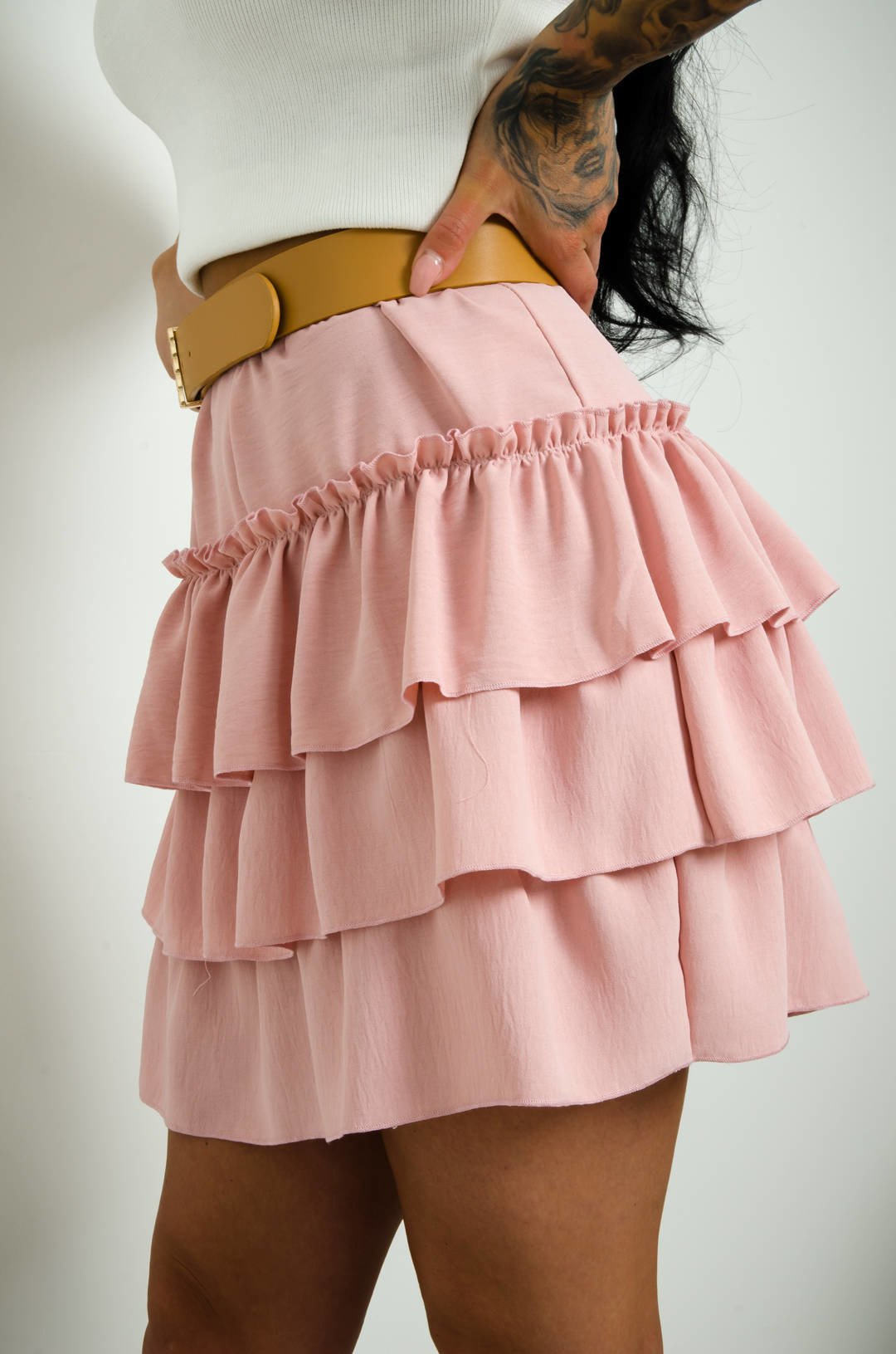 PUDROWO-RÓŻOWA SPÓDNICA MINI Z FALBANAMI