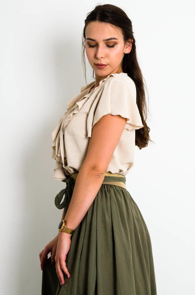 BEŻOWA BLUZKA KOSZULOWA Z ŻABOTEM