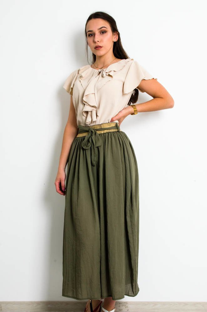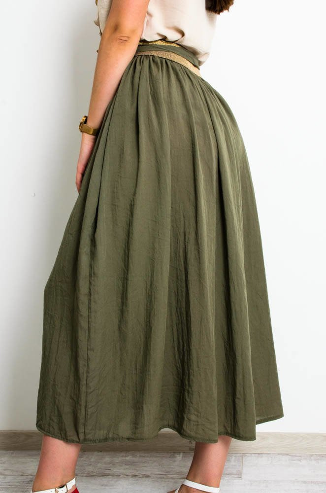 ZIELONA SPÓDNICA MAXI Z WIĄZANIEM-ZŁOTA GUMA W PASIE