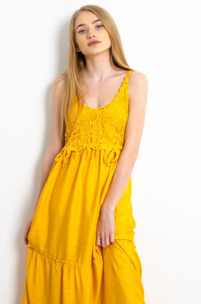 ŻÓŁTA SUKIENKA MAXI NA RAMIĄCZKACH Z AŻUROWĄ GÓRĄ