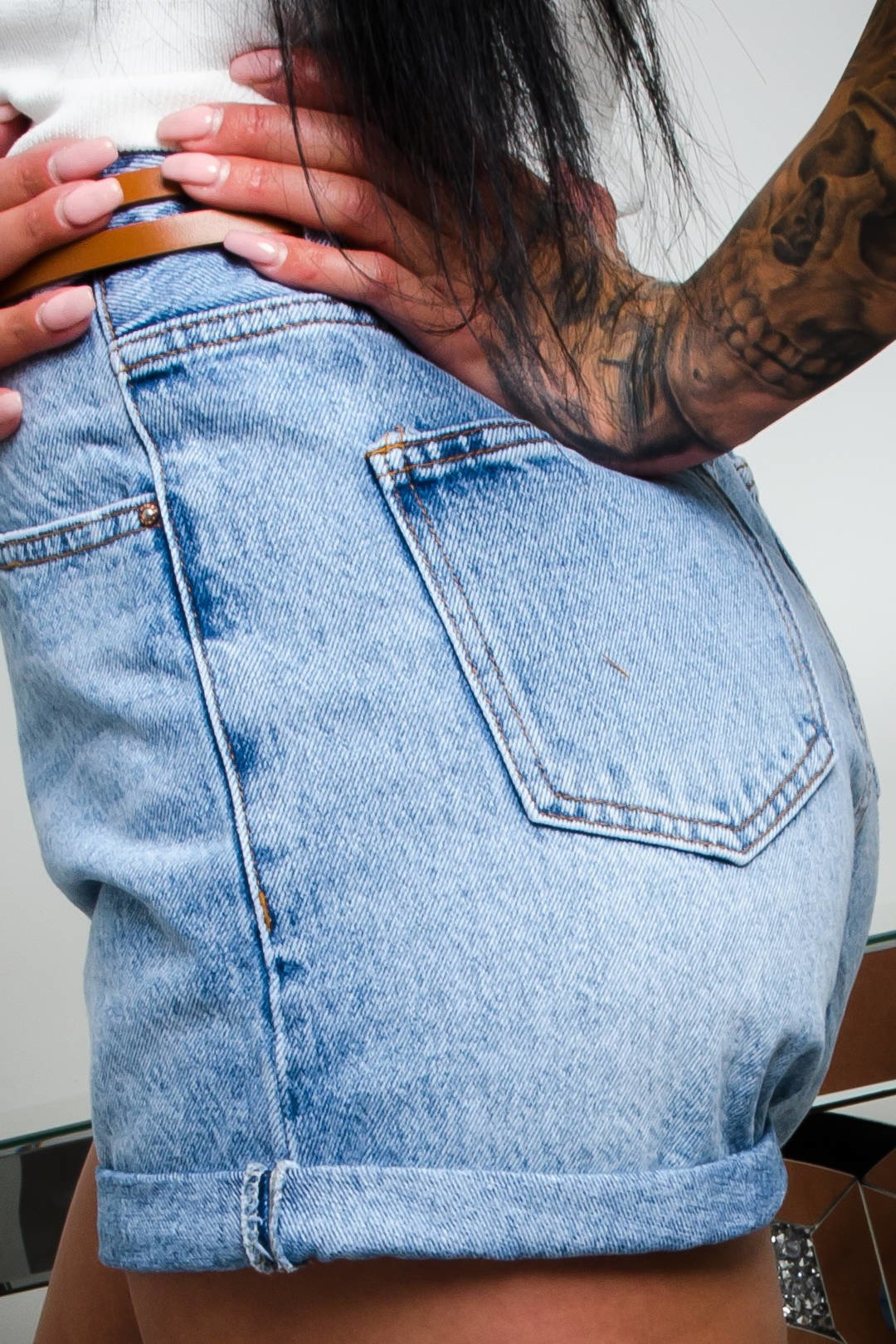 JEANSOWE SZORTY Z WYSOKIM STANEM-PASEK W ZESTAWIE