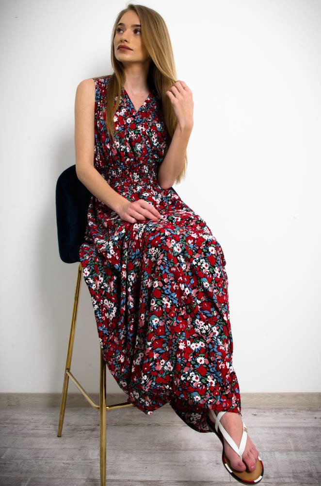 KWIECISTA DŁUGA SUKIENKA Z KOPERTOWYM DEKOLTEM
