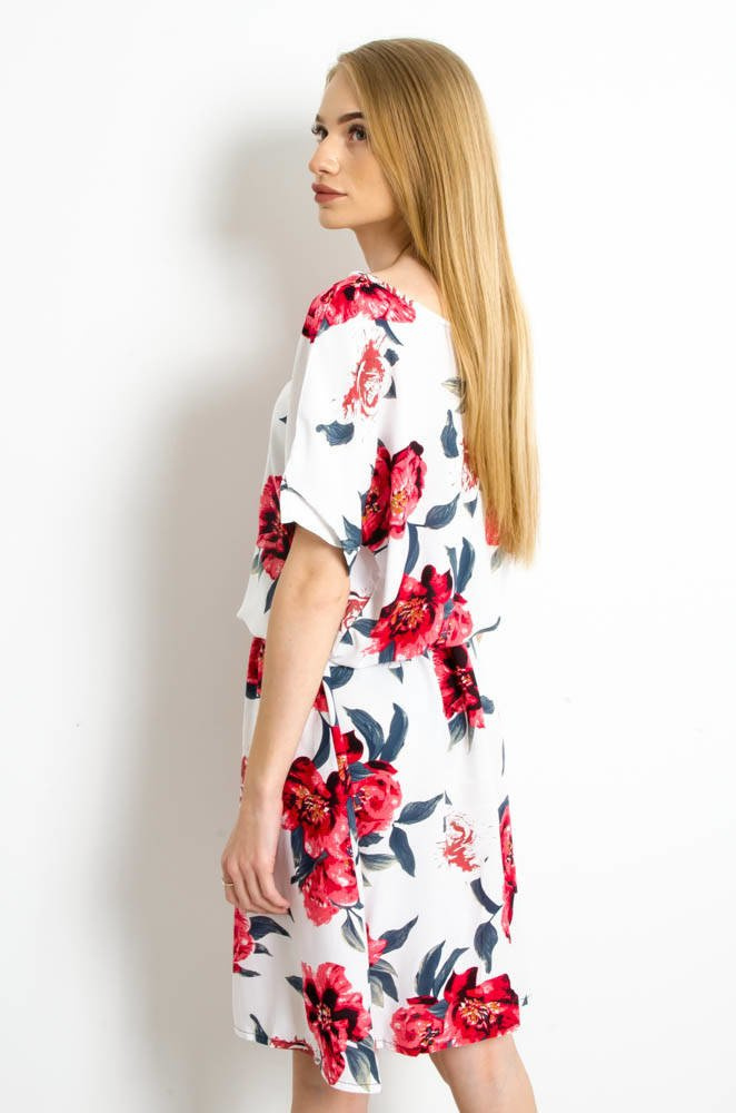 BIAŁA SUKIENKA W KWIATY Z DEKOLTEM W ŁÓDKĘ