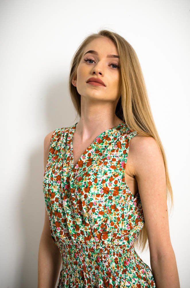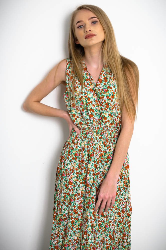 BIAŁA SUKIENKA MAXI W KWIATY-KOPERTOWY DEKOLT