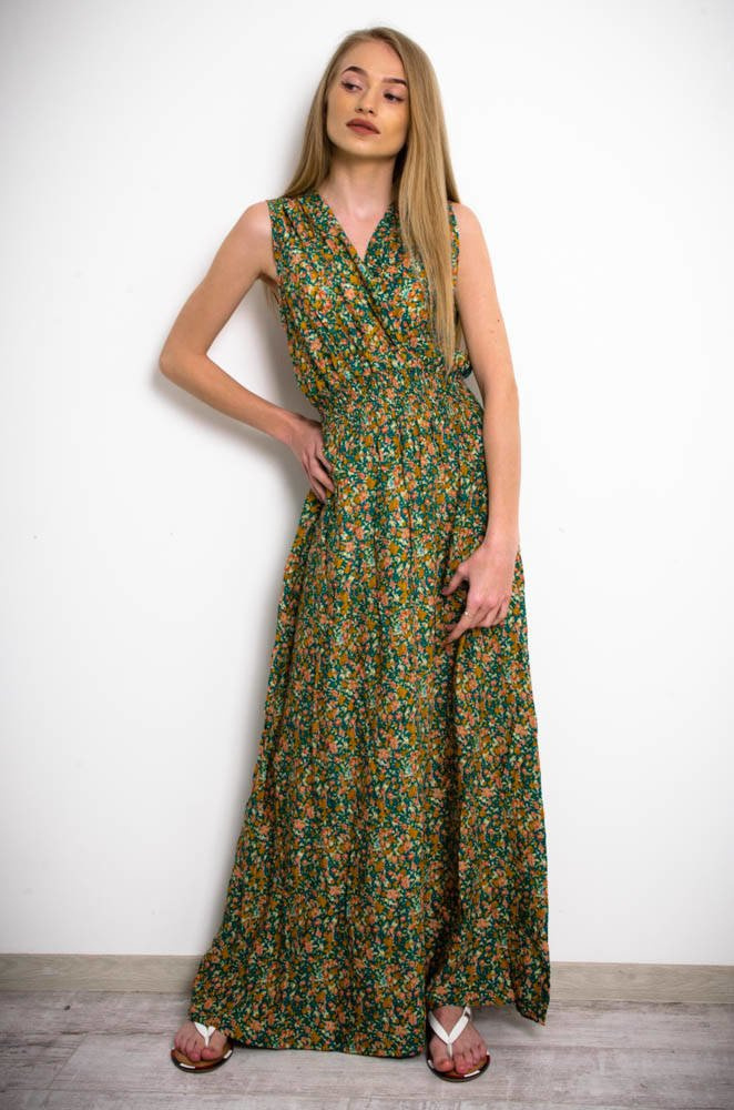 ZIELONA SUKIENKA MAXI W KWIATY-KOPERTOWY DEKOLT