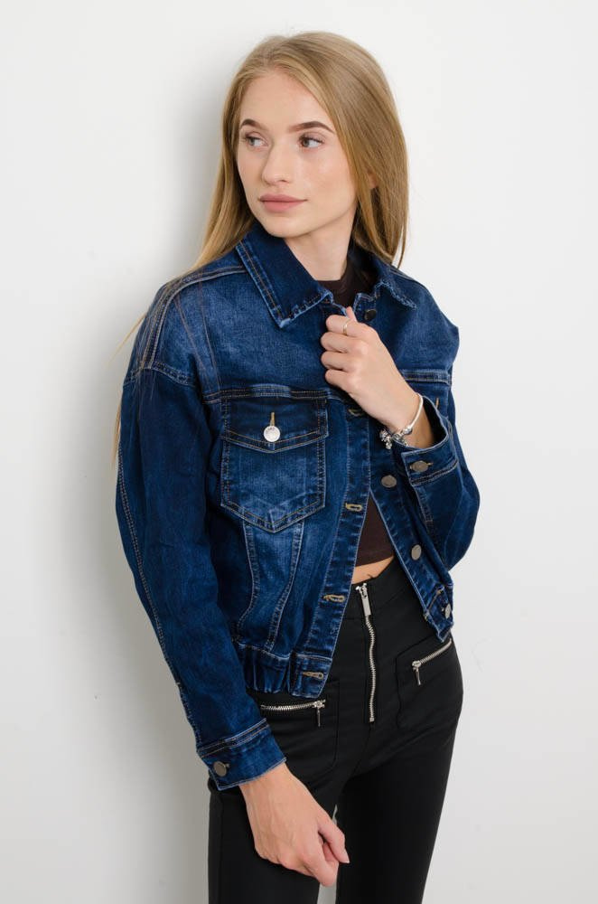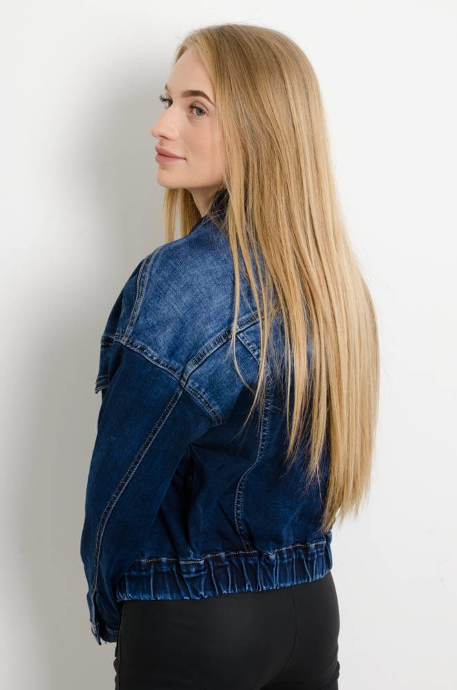 GRANATOWA KURTKA JEANSOWA BOMBERKA ZE ŚCIĄGACZEM