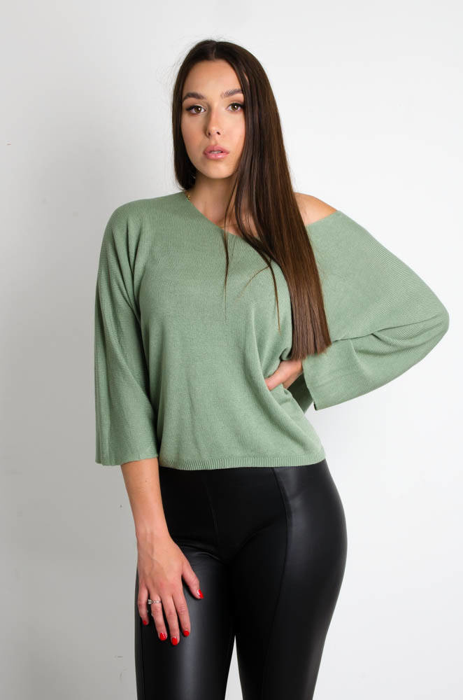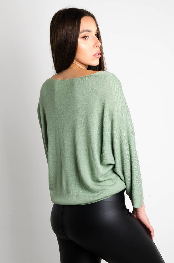 ZIELONY SWETEREK NIETOPERZ Z DEKOLTEM W SEREK.