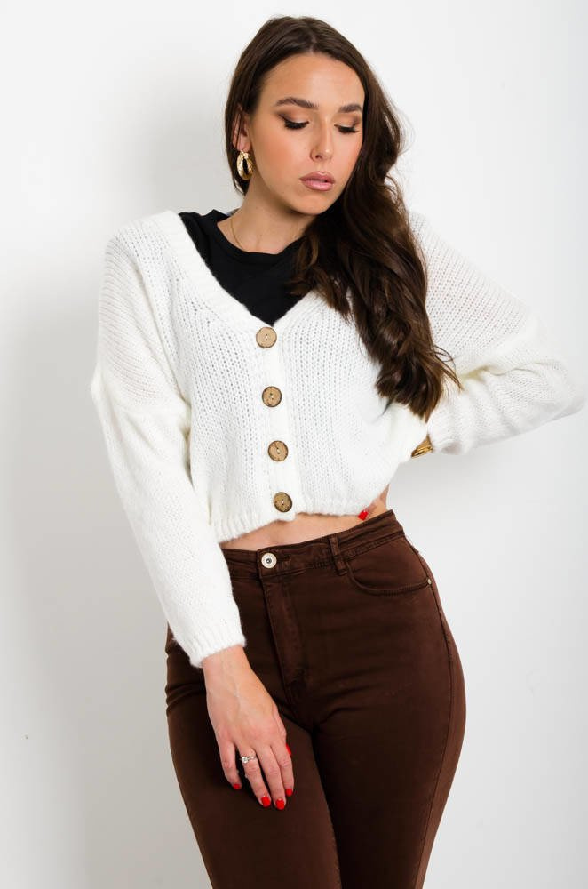KREMOWY KRÓTKI KARDIGAN SWETER ZAPINANY NA GUZIKI
